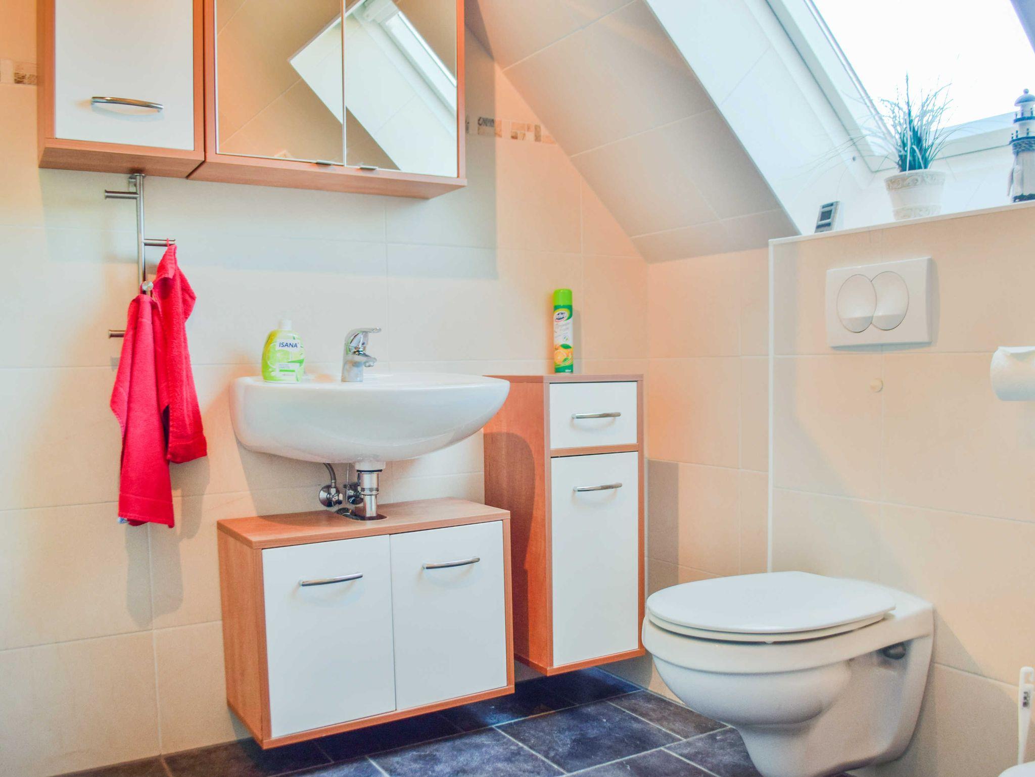 Die geschmackvoll eingerichtete Doppelhaushälfte für 6 Personen hat einen separaten Eingang und besitzt ein Wohnzimmer mit Kamin und offener Küche, sowie einen Essbereich und elektrische Rollläden im Erdgeschoss. Die Küche ist komplett ausgestattet mit Geschirr, Gläsern, Besteck, Töpfen, Pfannen, Backofen mit Backblech, Herd mit 4 Cerankochfeldern, Kühlschrank (92l) mit Tiefkühlfach (33l), Mikrowelle, Geschirrspüler, Toaster, Wasserkocher und Kaffeemaschine. Des Weiteren gehören zwei 2 Bäder zum Ferienhaus, eines mit Dusche, WC und Sauna, das andere mit Badewanne und WC, sowie 3 Schlafzimmer, zwei mit jeweils einem Doppelbett (180x200) und eines mit einem Schlafboden (140x200), welches über eine steile Raumspartreppe erreichbar ist.