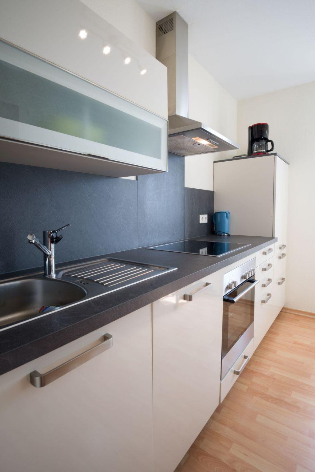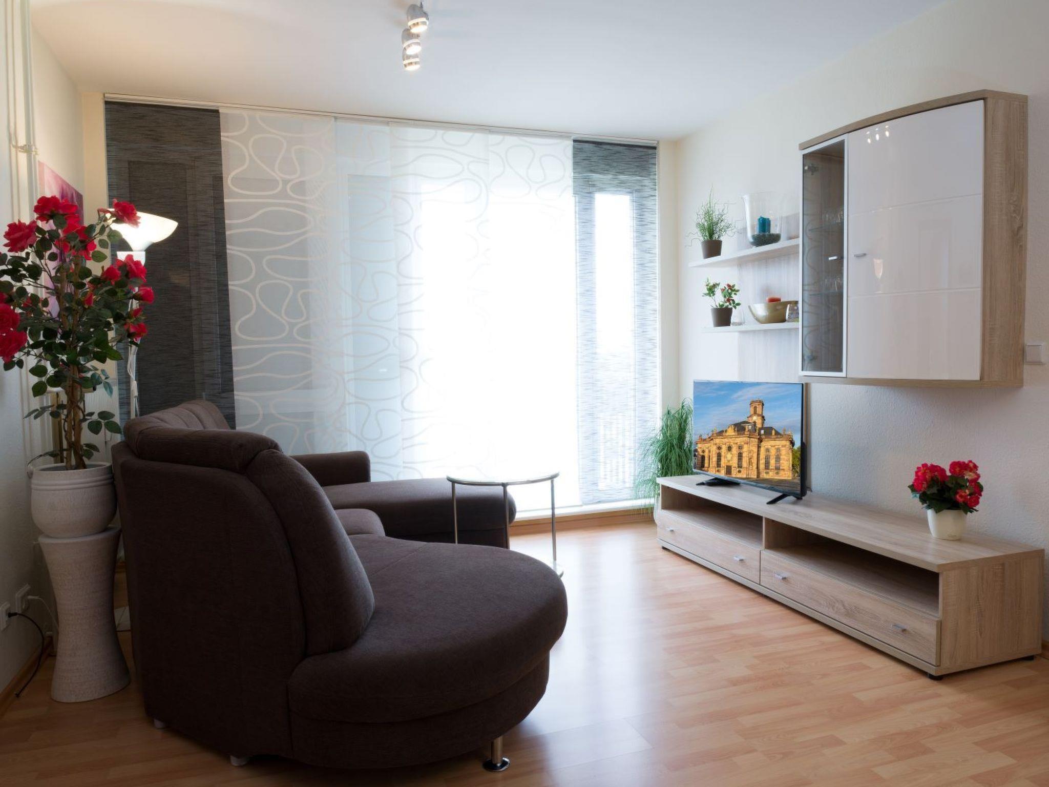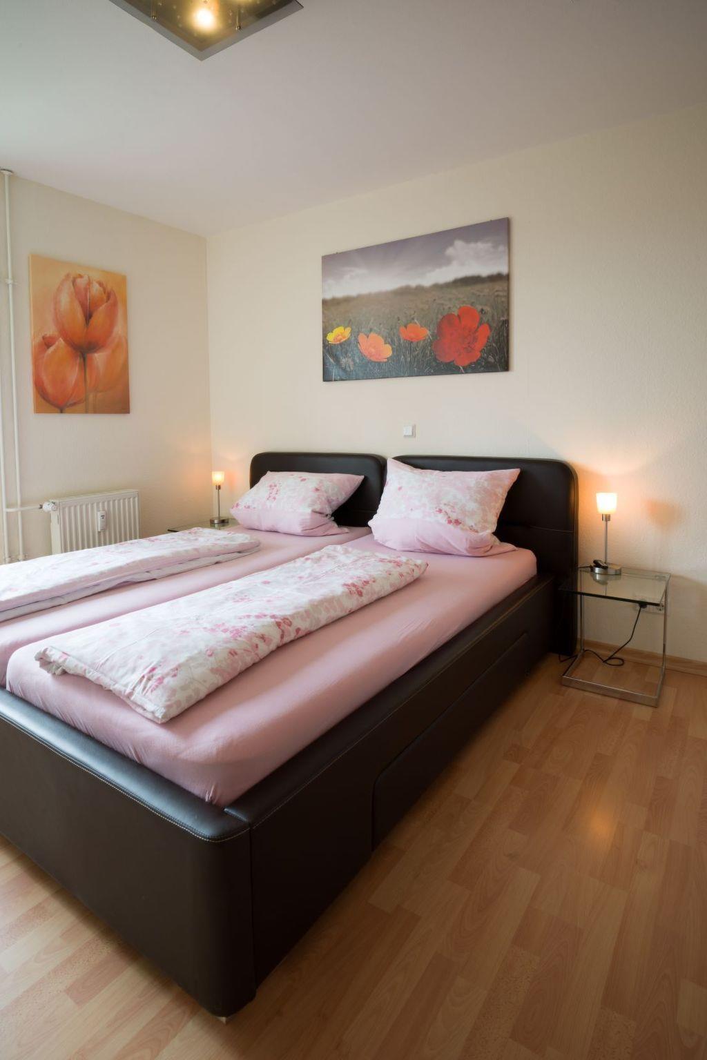 friendly, harmonious, comfortable furnishings and has been furnished with great attention to detail. From the very sunny south-facing balcony you have a marvellous distant view from east to west over Saarbrücken and the Saar valley. All rooms face the garden, so there is no major noise pollution from car traffic. Our 2-room flat is approx. 58 square metres in size. The layout of the flat is divided into: