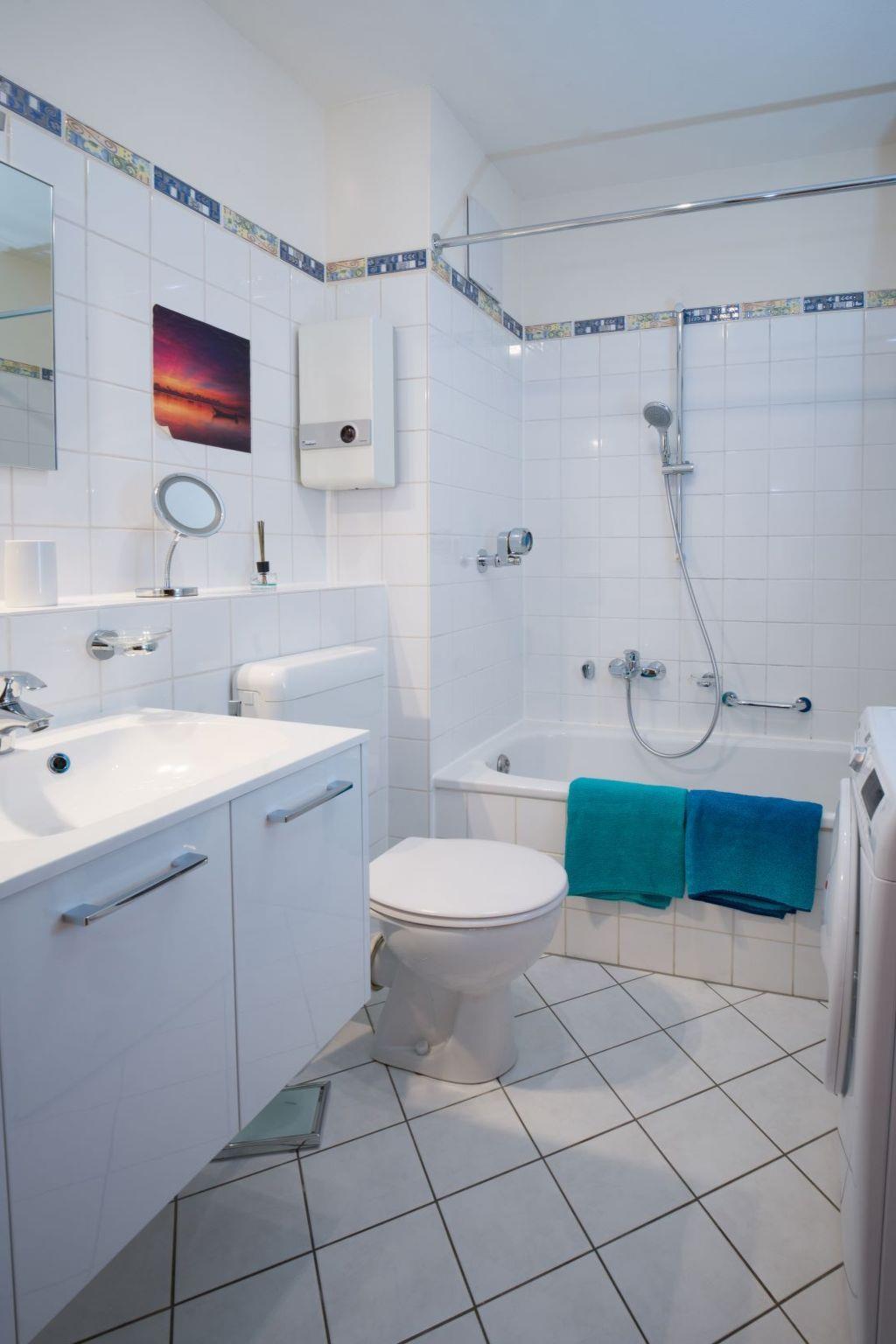Entrance area with adjoining bathroom with bathtub. From here you enter