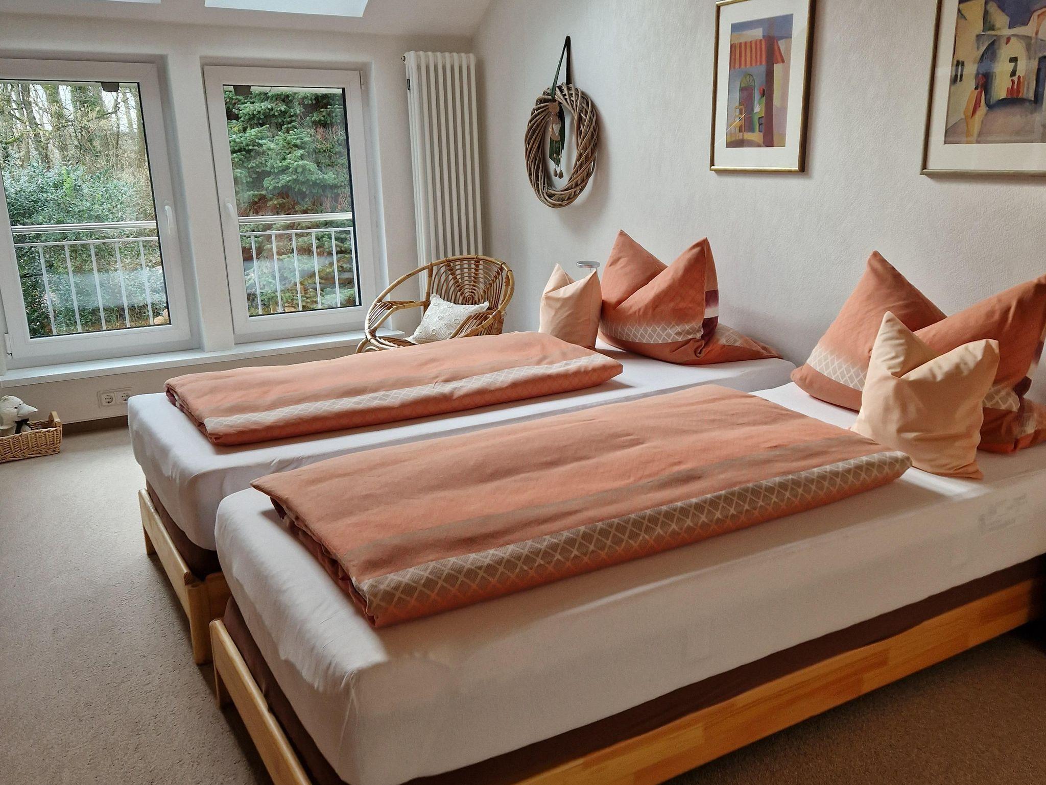 • 1 Schlafzimmer mit wahlweise 1 Doppelbett und 1 Einzelbett oder 3 Einzelbetten, Kleiderschrank