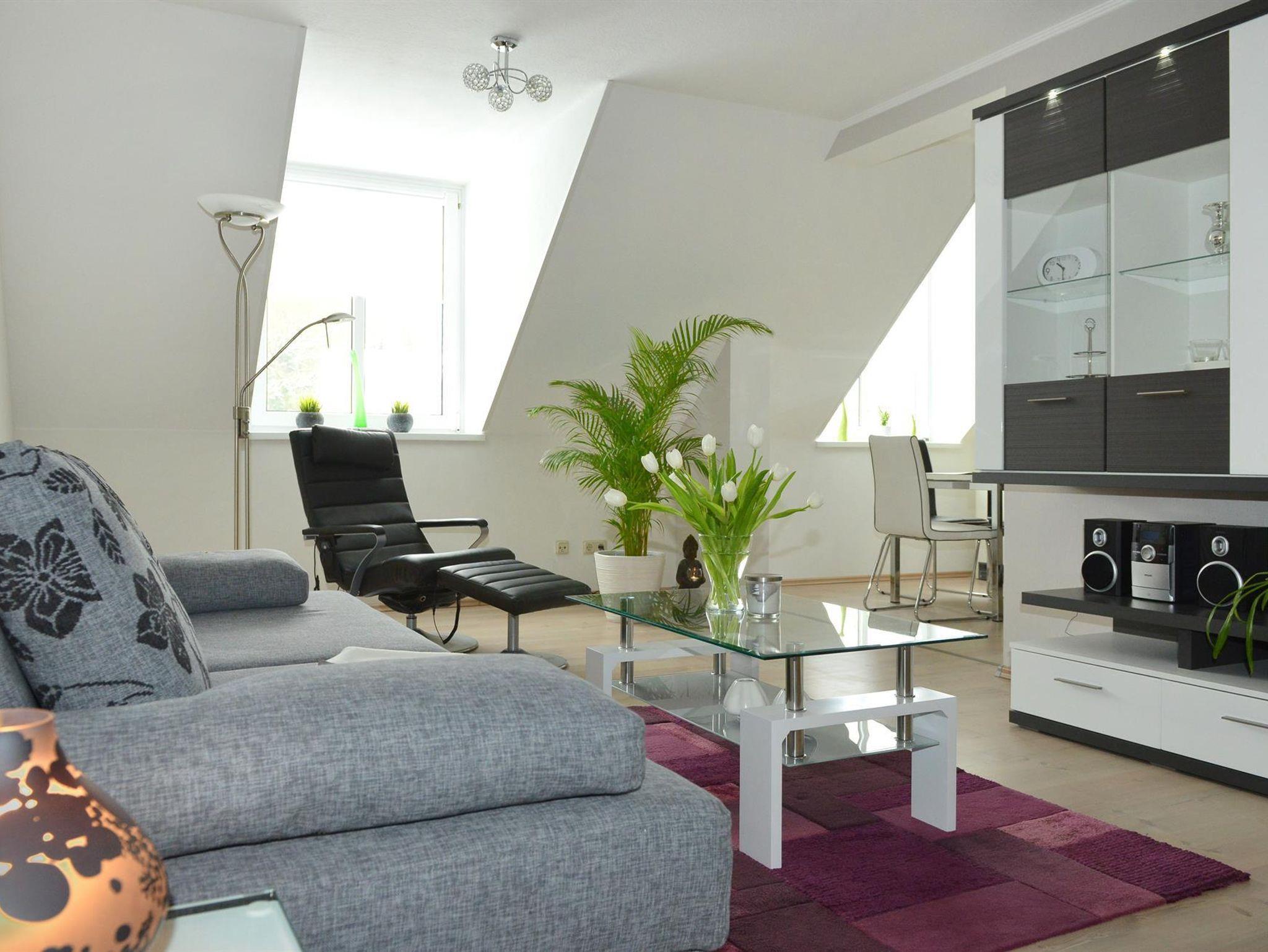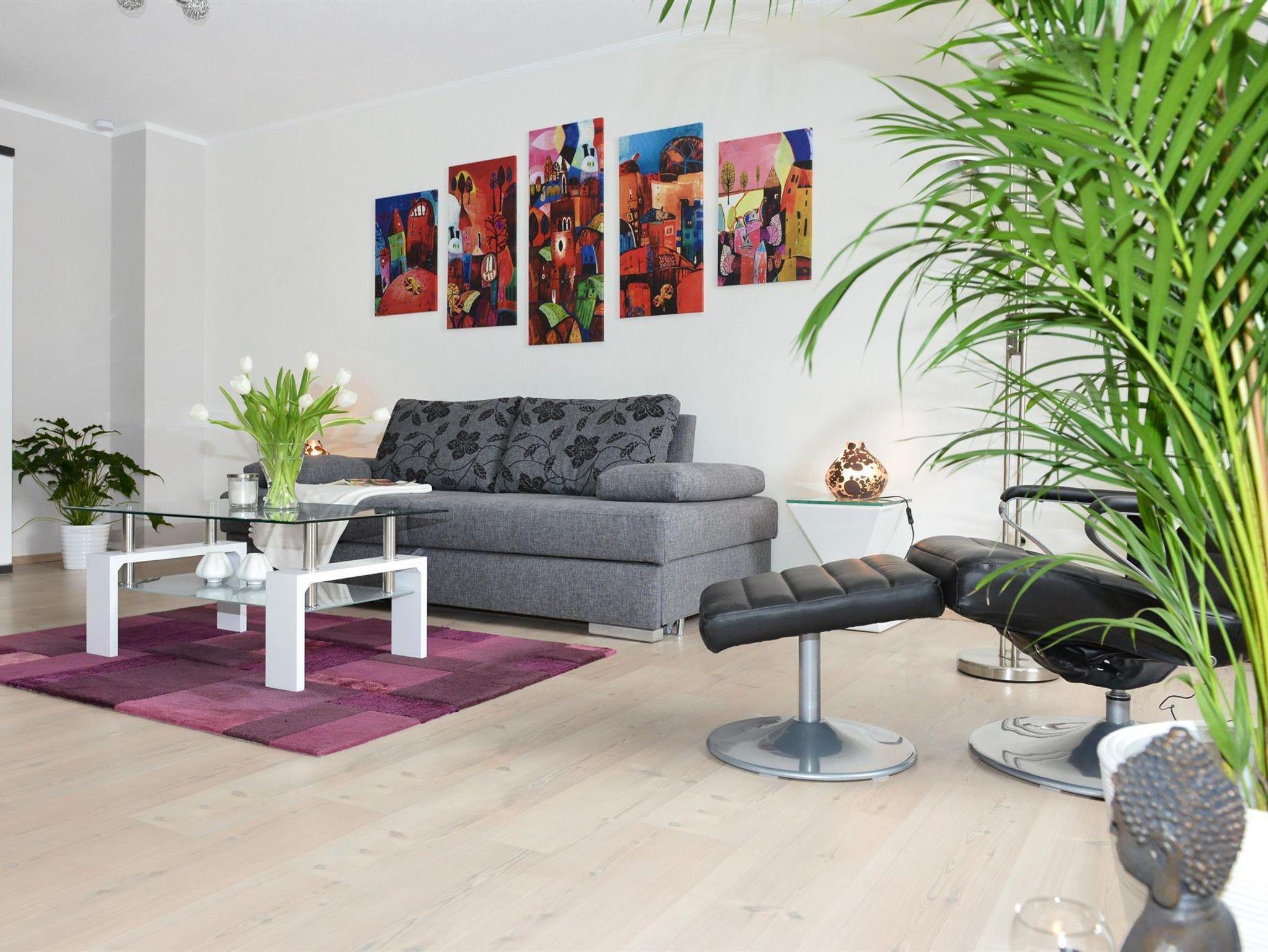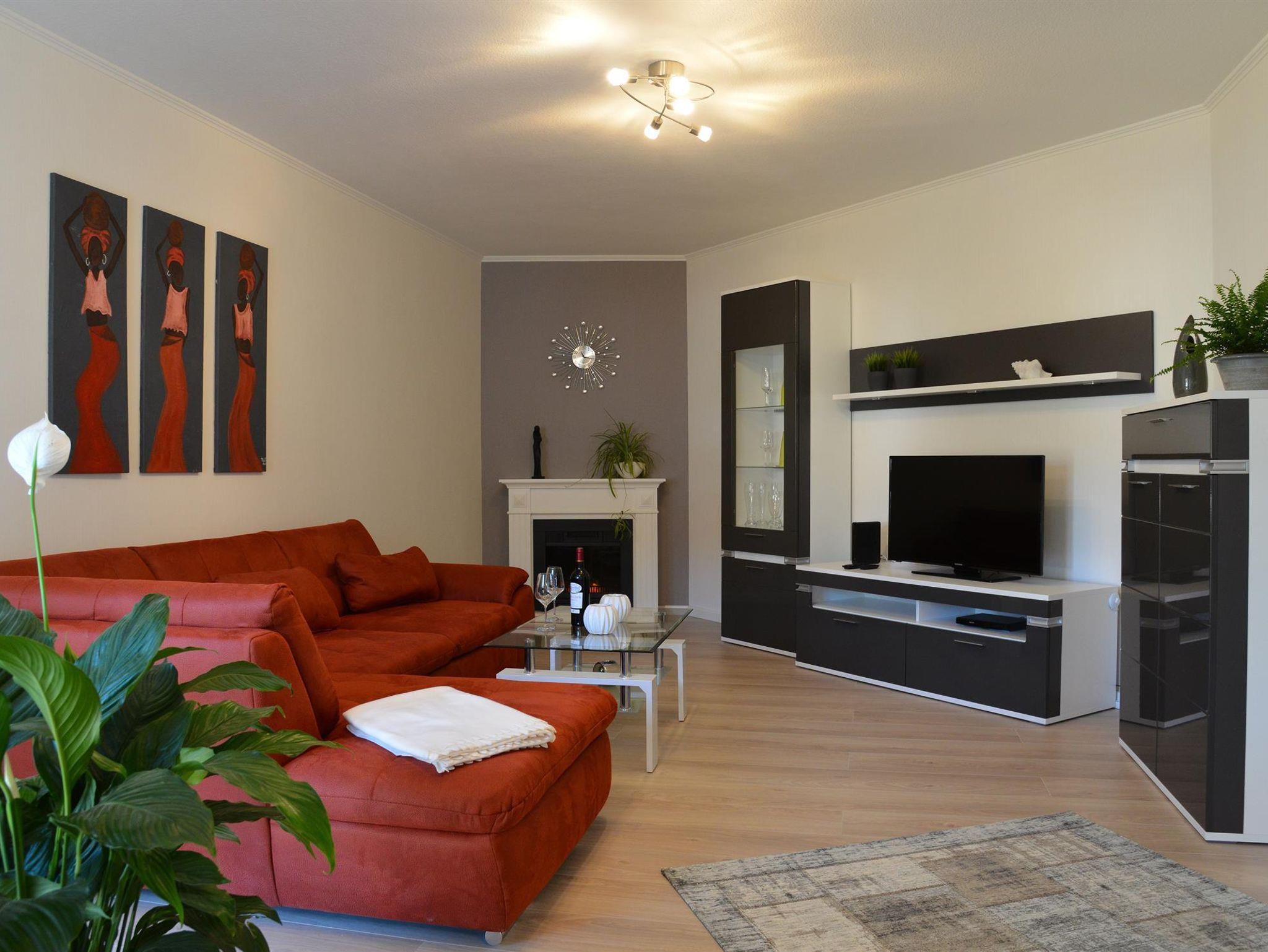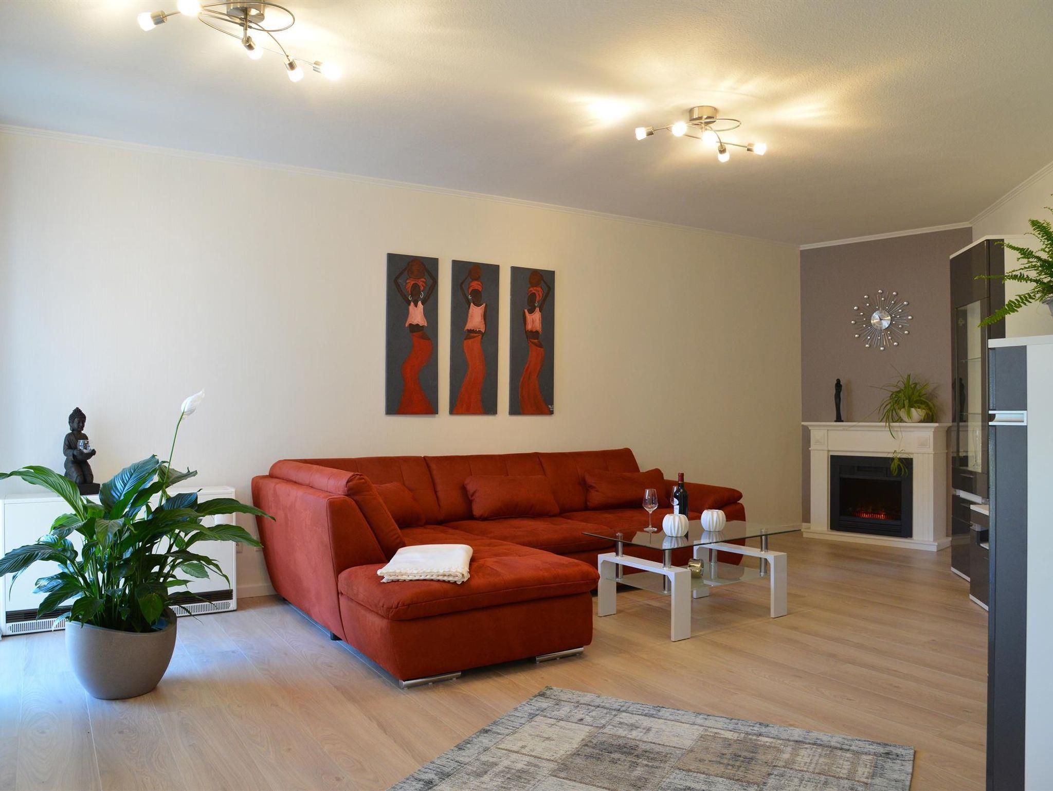 • Wohnzimmer mit großem gemütlichem Sofa mit Schlaffunktion, Smart-TV, Amazon Prime, Netflix, Kabelanschluss, DVD-Player, Stereoanlage, elektrischer Kamin