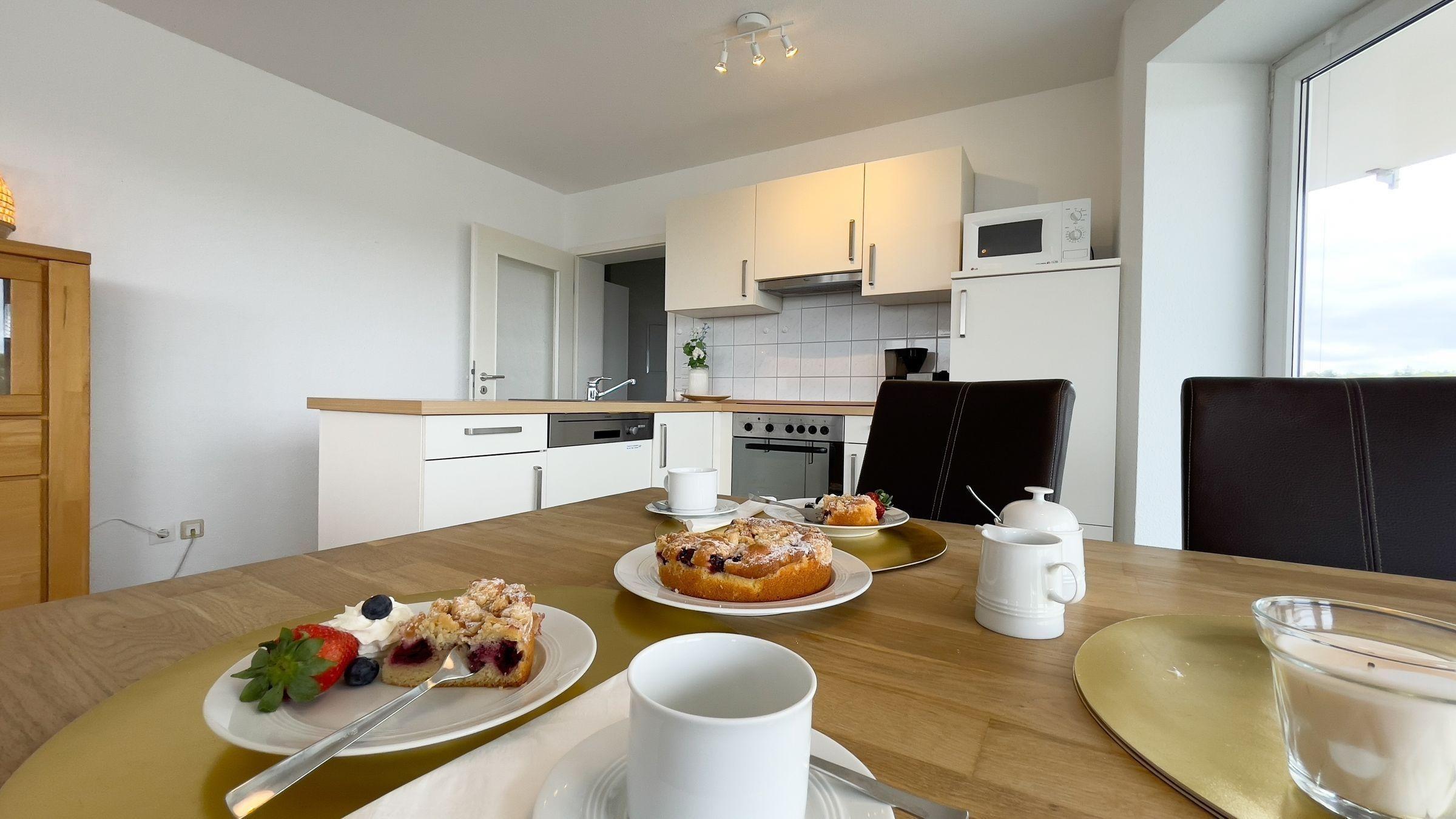 Die Ferienwohnung D1.5 im Haus Nordseebrandung bietet auf 84 m² ausreichend Platz für bis zu 6 Personen. Sie verfügt über zwei separate Schlafzimmer sowie ein Schlafsofa im Wohnbereich, ideal für Familien oder Gruppen. Die offene Küche ist modern ausgestattet mit Herd, Ceranfeld, Backofen, Spülmaschine und Kühlschrank mit Gefrierfach. Der Wohnbereich lädt mit einer gemütlichen Sofaecke zum Entspannen und Genießen des Meerblicks ein.