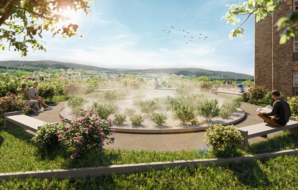 Treten Sie hinaus auf den Balkon und genießen Sie die freie Sicht ins Grüne. Flanieren Sie über die gepflegten Außenanlagen des Salzgut Resorts, die mit weitläufigen Rasenflächen und geschwungenen Wegen gestaltet sind. Setzen Sie sich an den runden Platz oder beobachten Sie vom Hang aus die sanfte Landschaft des Kyffhäuser-Gebiets.