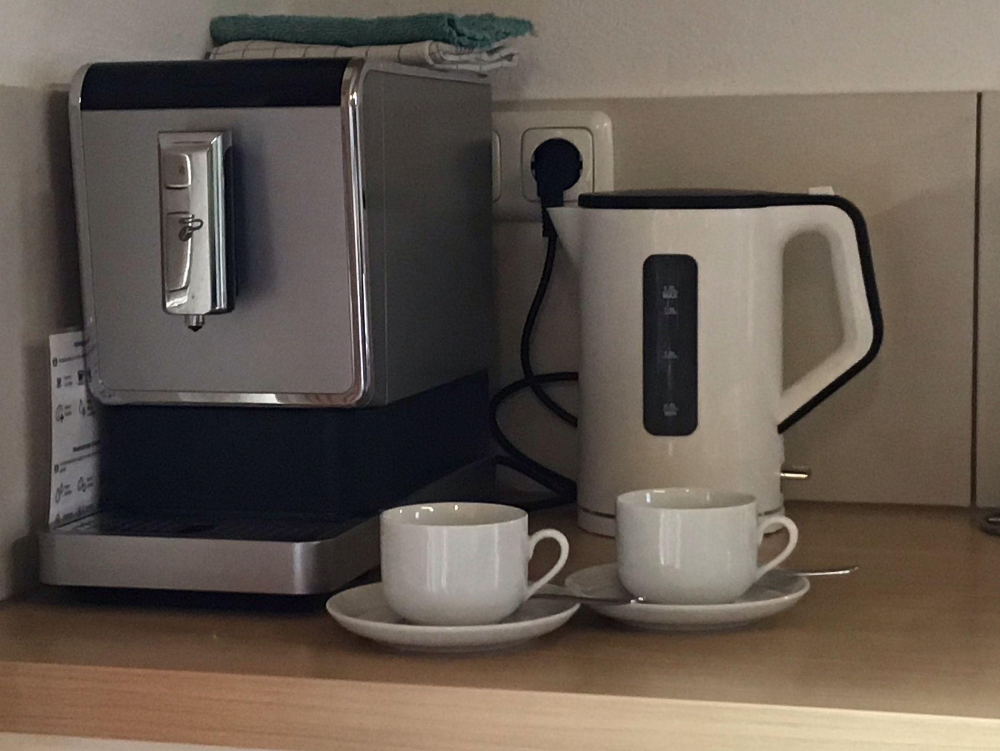 mit Kaffeevollautomat, Wasserkocher, Eierkocher, Toaster, Brotschneidemaschine,