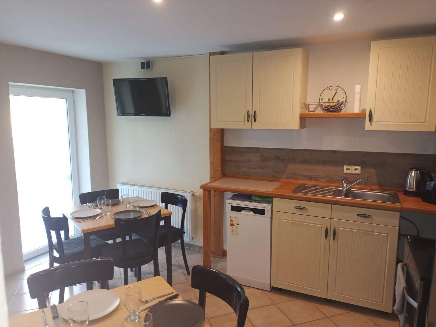 Die abgeschlossene Küche mit eigenem Esstisch ist umfassend ausgestattet und lässt kaum Wünsche offen: Ceranherd mit Elektro-Backofen, Mikrowelle, Kühlschrank, extra Gefrierschrank, Spülmaschine, Kaffeemaschine, Wasserkocher sowie allerlei Küchenutensilien, Geschirr und Besteck stehen zur Verfügung. So wird das Kochen und Genießen im Kreis Ihrer Liebsten zu einem Vergnügen. Für Familien mit Babys gibt es entsprechende Möglichkeiten, und die Nutzung einer eigenen Waschmaschine sorgt für zusätzlichen Komfort auch bei längeren Aufenthalten.