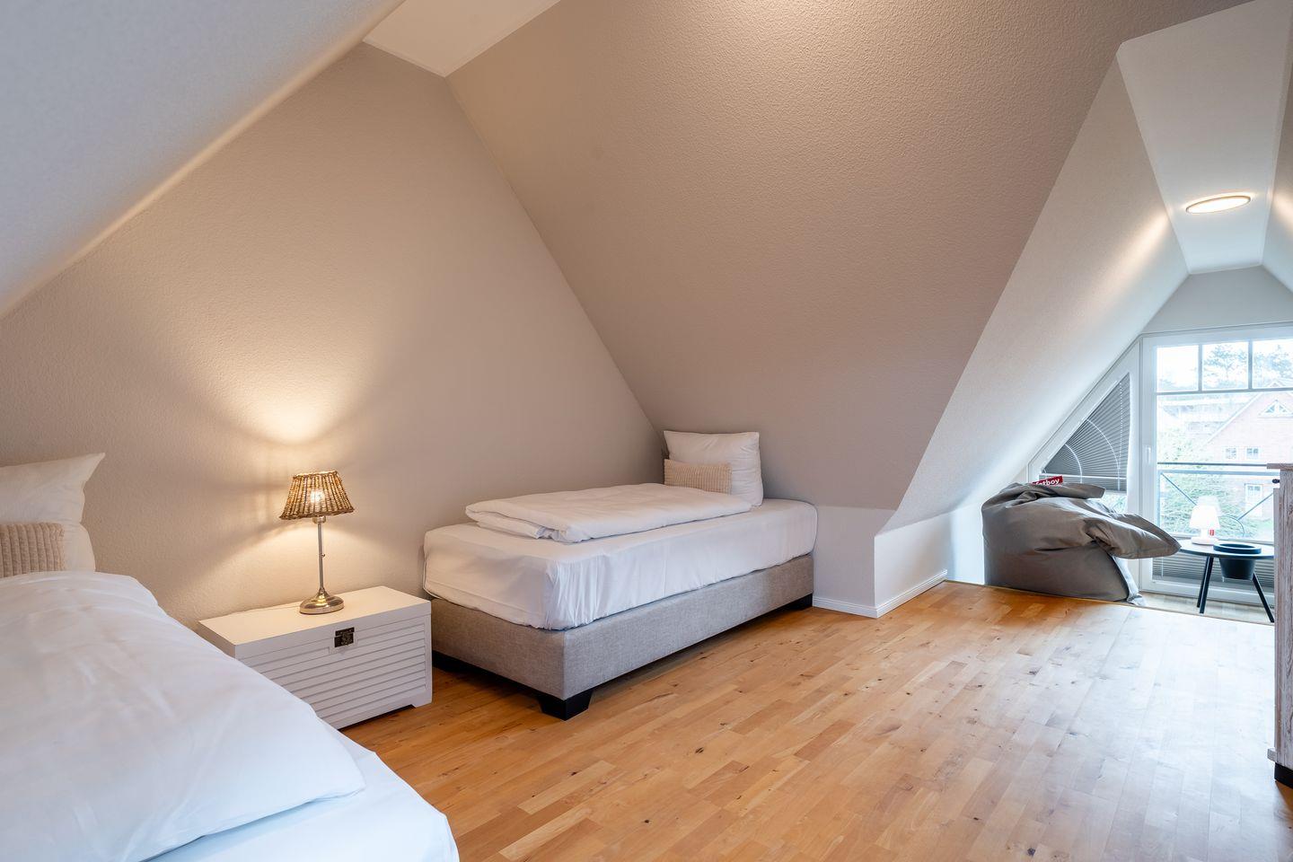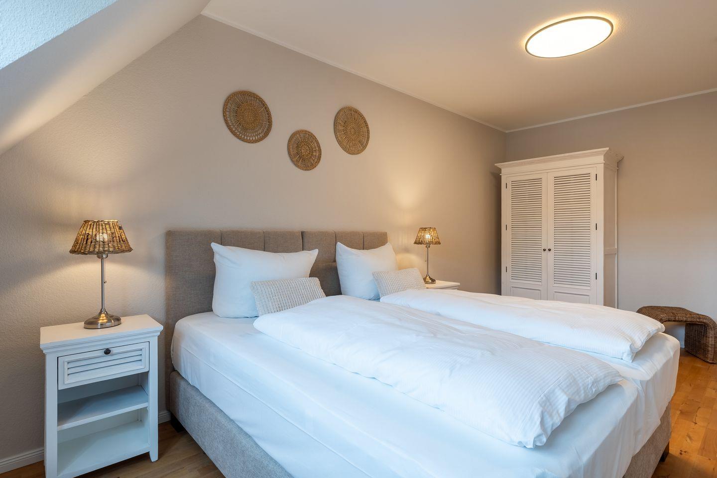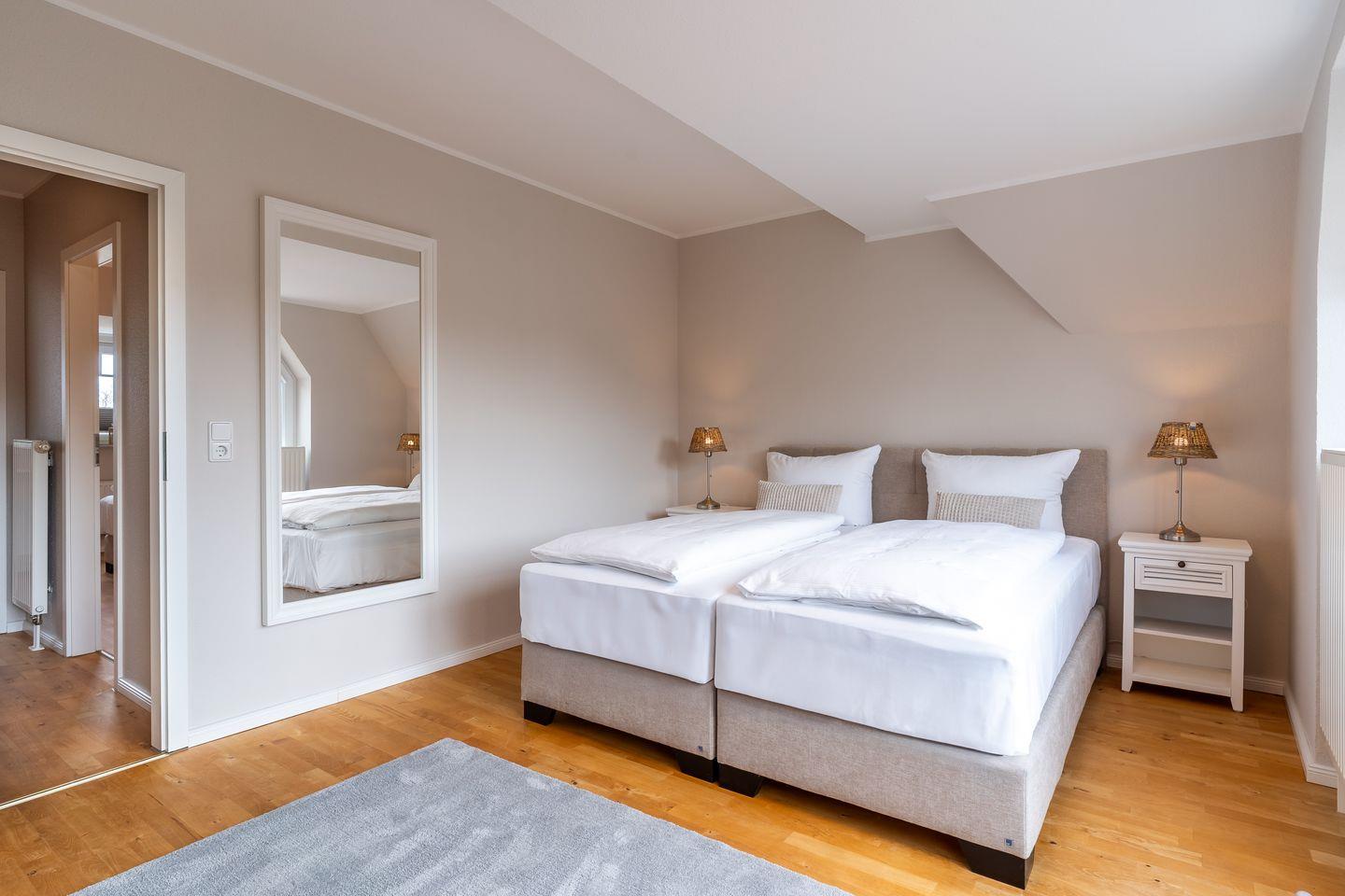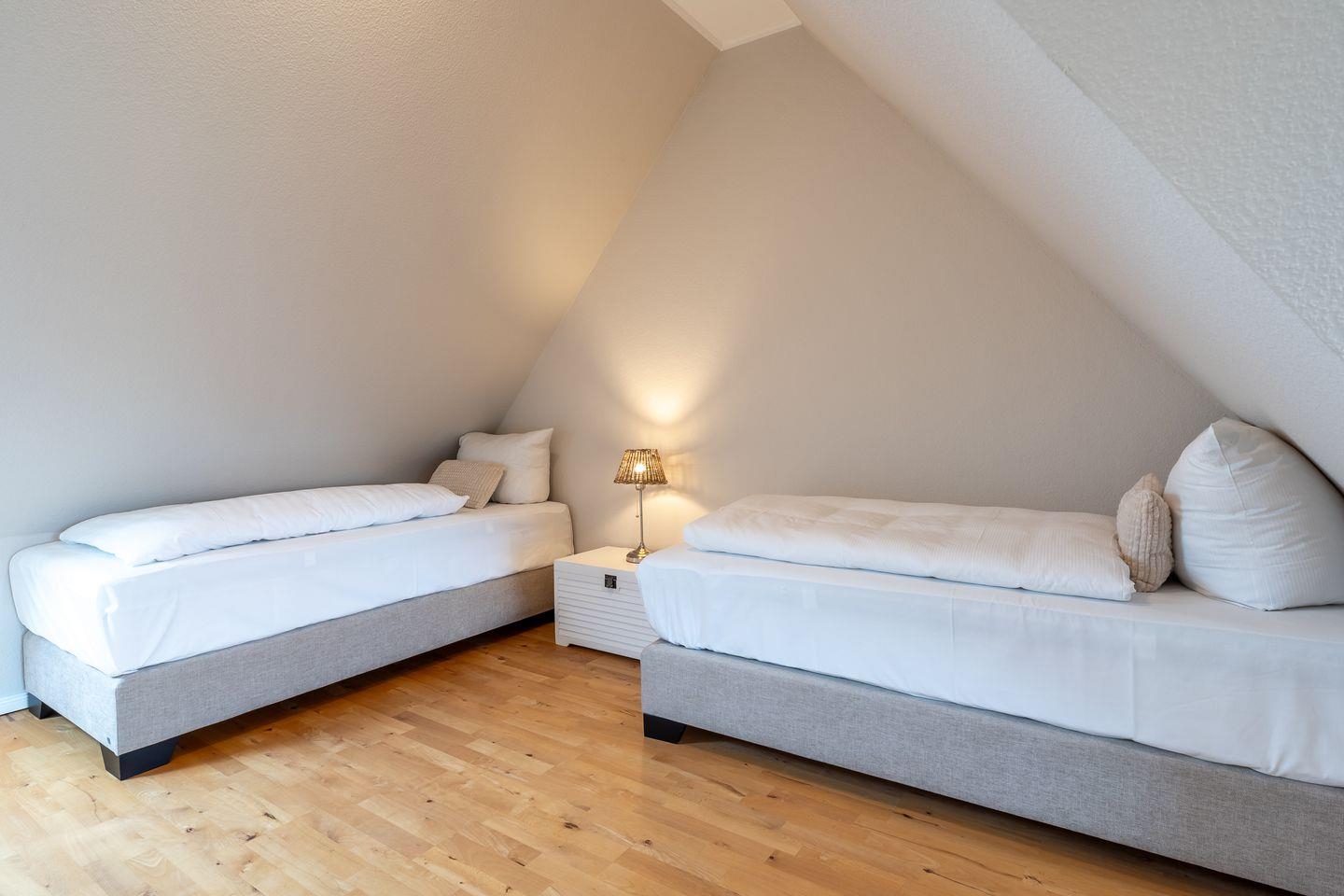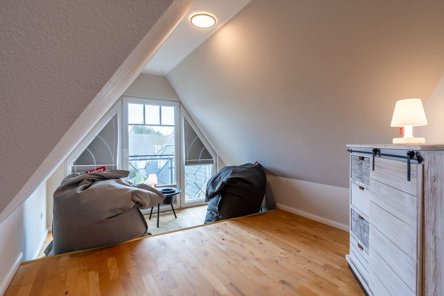 Bei der Ausstattung der Unterkunft wurde an alles gedacht. Auf zwei Etagen finden Sie drei geschmackvoll eingerichtete Schlafzimmer, die eine ruhige und erholsame Nachtruhe versprechen. Zudem steht Ihnen ein Gäste-WC sowie ein modernes Badezimmer mit Dusche zur Verfügung.