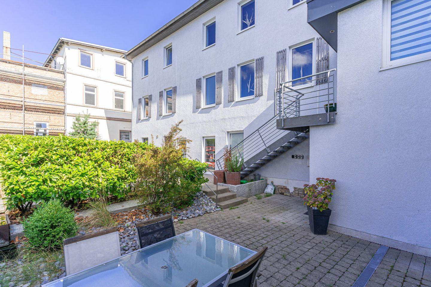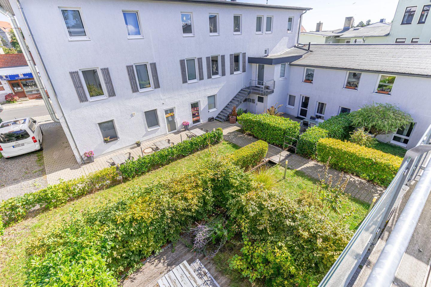 Oder Sie suchen sich einen öffentlichen Parkplätze in der Umgebung. Direkt vor dem Haus gibt es an der Hafenstraße einen Parkstreifen, wo man stundenweise (mit Parkscheibe) parken kann, so dass das Be- und Entladen bequem möglich ist. Es gibt einen Fahrradständer auf dem Hof.