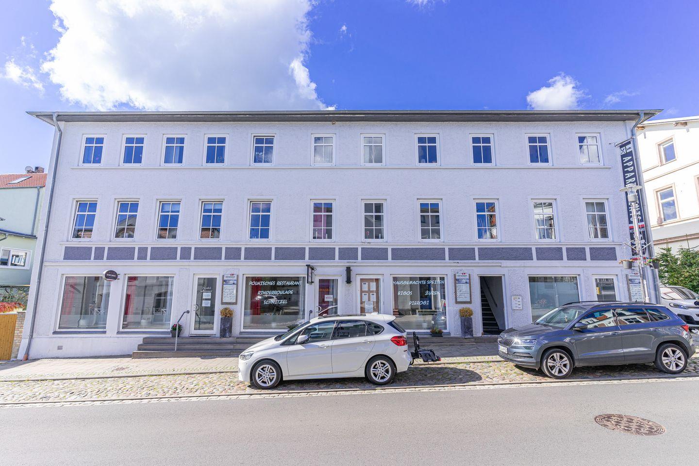 Ein Pkw-Stellplatz gehört nicht zur Wohnung. Unsere Empfehlung: Nutzen Sie das öffentliche, große Parkhaus am Stadthafen, welches nur ca. 200m entfernt ist.