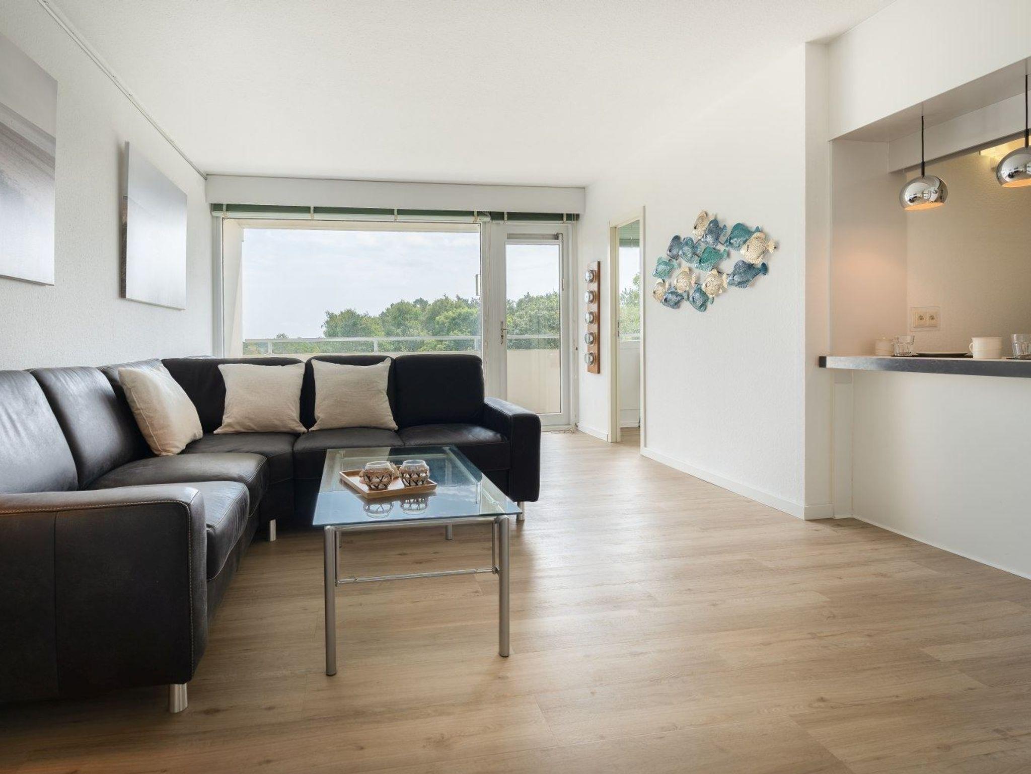 Modern und hell eingerichtete 2 1/2-Zimmer-Ferienwohnung Düne 73 im Haus Atlantic mit ca. 47 qm auf 1 Ebene (4. OG, mit Fahrstuhl) für bis zu 4 Personen. In strandnaher Lage im Ortsteil Bad in St. Peter-Ording.