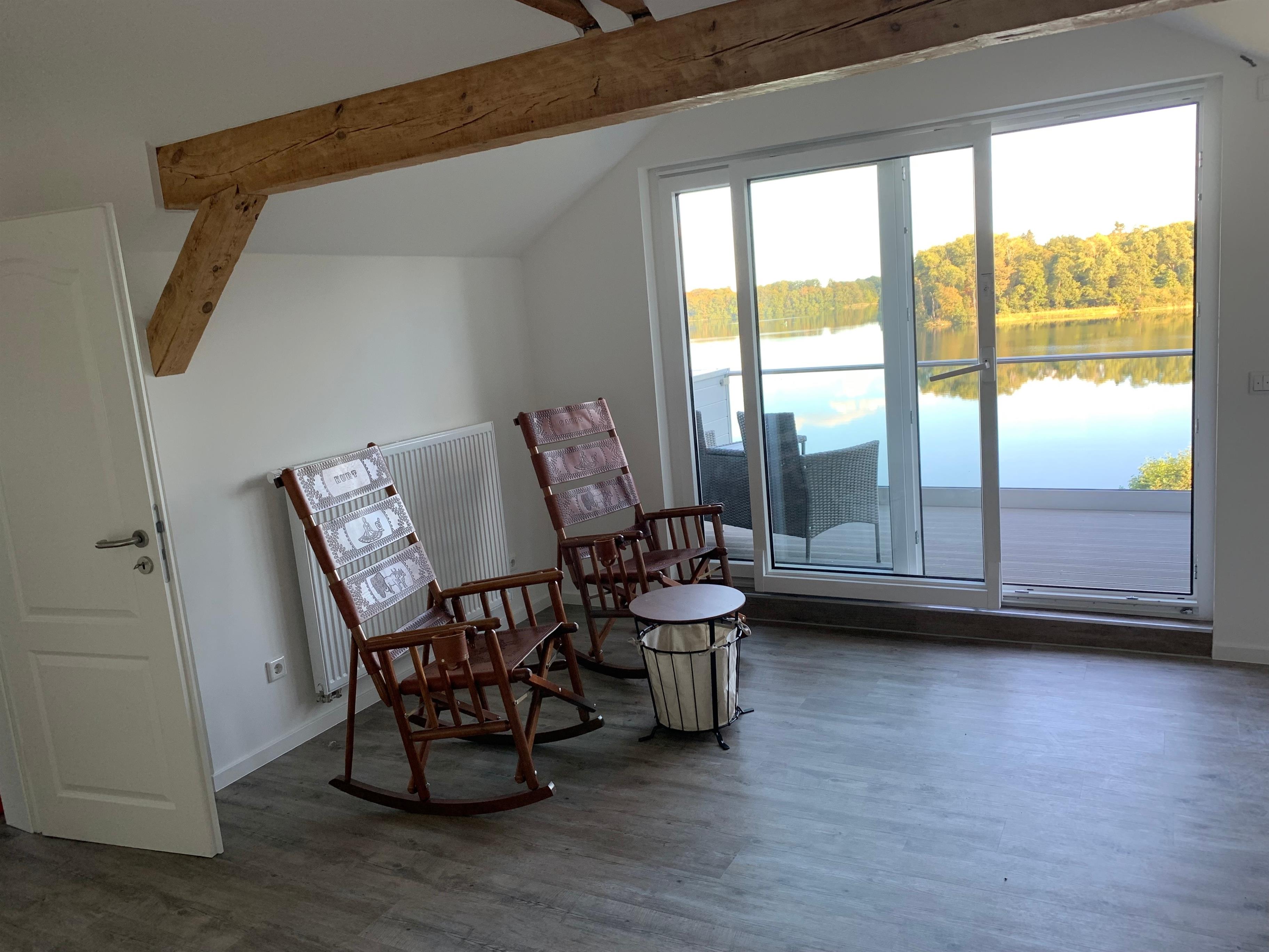 Die Unterkunft bietet eine unvergleichbare Aussicht auf den Stocksee, zu dem man durch das Grundstück direkten Zugang erhält. Der obere Gartenteil ist zur Alleinnutzung vorgesehen; der untere (Seezugang) kann mitgenutzt werden. Der großzügige Garten von dem aus zum Badesteg sowie Ruderboot gelangt werden kann, ist mit modernen Lounge- und Gartenmöbeln ausgestattet.