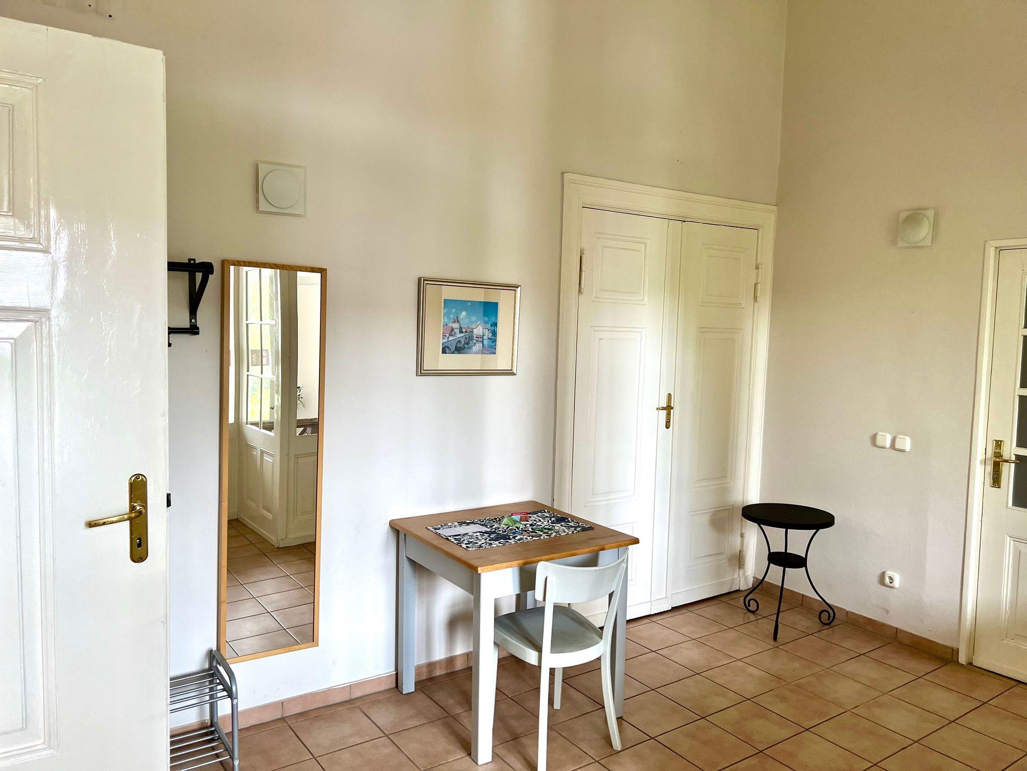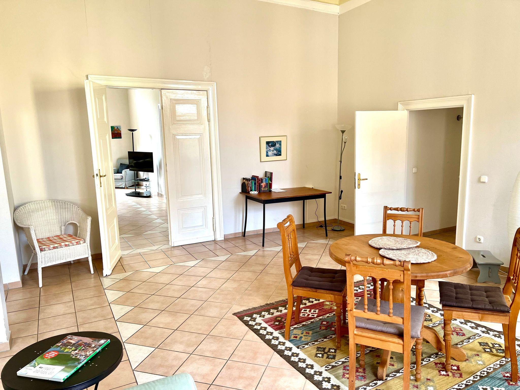 Die Wohnung hat ein großes Wohnzimmer mit Balkon sowie eine voll ausgestattete Küche mit großen Esstisch. Neben der Küche bzw. neben dem Wohnzimmer ist ein Aufenthaltsraum zum Sitzen, Lesen und Verweilen.