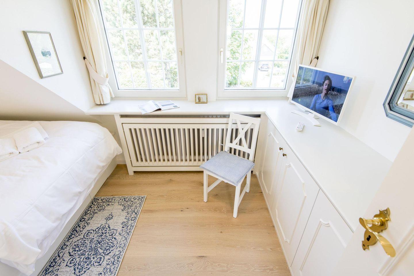 In den beiden Schlafzimmern ist für erholsame Nächte bestens gesorgt. Das erste Schlafzimmer verfügt über ein komfortables Doppelbett (2x 90x200 cm), einen Kleiderschrank und einen TV. Das zweite Schlafzimmer, ebenfalls mit einem Doppelbett (2x 90x200 cm) und praktischen Einbauschränken ausgestattet, bietet zusätzlichen Komfort und Gemütlichkeit.