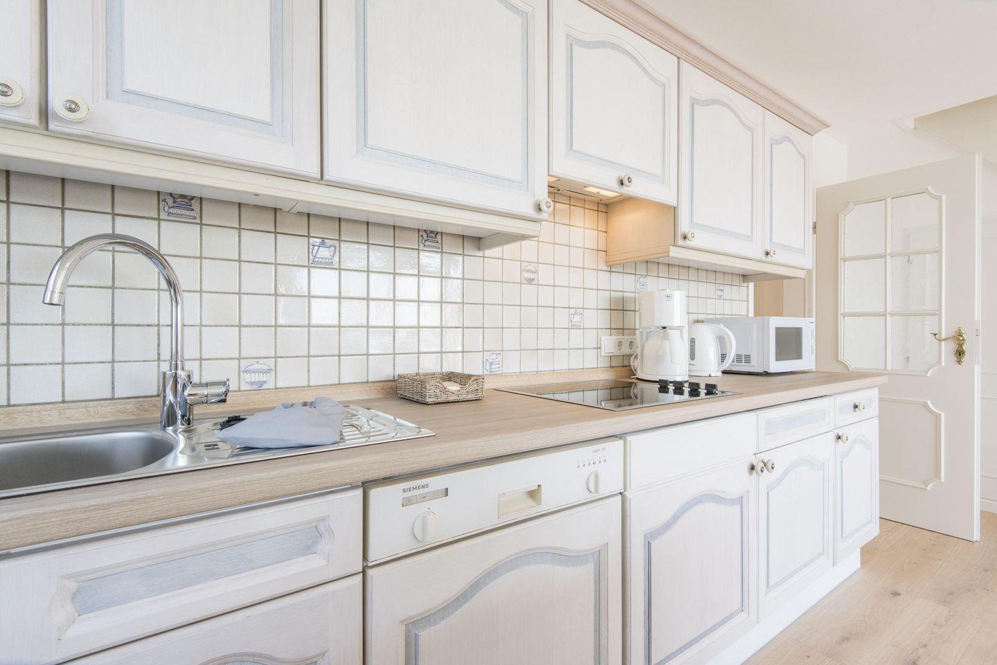 Die moderne, offene Küche bietet eine hochwertige Ausstattung und lässt keine Wünsche offen. Mit Filterkaffeemaschine, Geschirrspüler und Waschmaschine ist alles vorhanden, um den Aufenthalt so komfortabel wie möglich zu gestalten. Die Küche lädt dazu ein, eigene kulinarische Kreationen zu zaubern und die gemeinsame Zeit in vollen Zügen zu genießen.