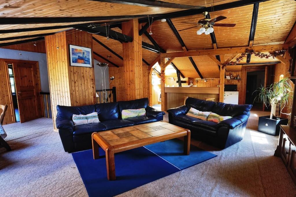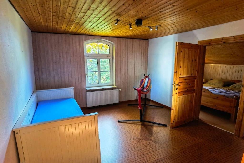 The holiday apartment is located on the first floor and has its own entrance. A bright staircase leads to the attic apartment. The central feature of the holiday apartment is the living room with a dining area and adjoining kitchen. The grounds, with their mature trees, offer opportunities to explore and discover new favorite spots year-round.