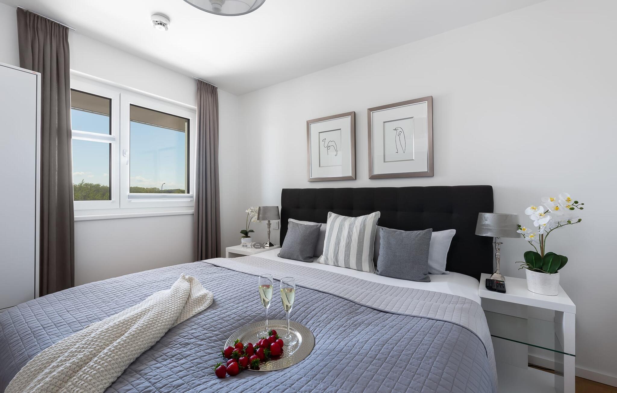 Ihr sucht eine Ferienwohnung für zwei Personen, die zentral und hierbei ruhig gelegen ist? Außerdem legt Wert auf eine gehobene und stilvolle Einrichtung? Dann ist diese Take FIVE, direkt an der Hafenpromenade, genau das Richtige für euch!