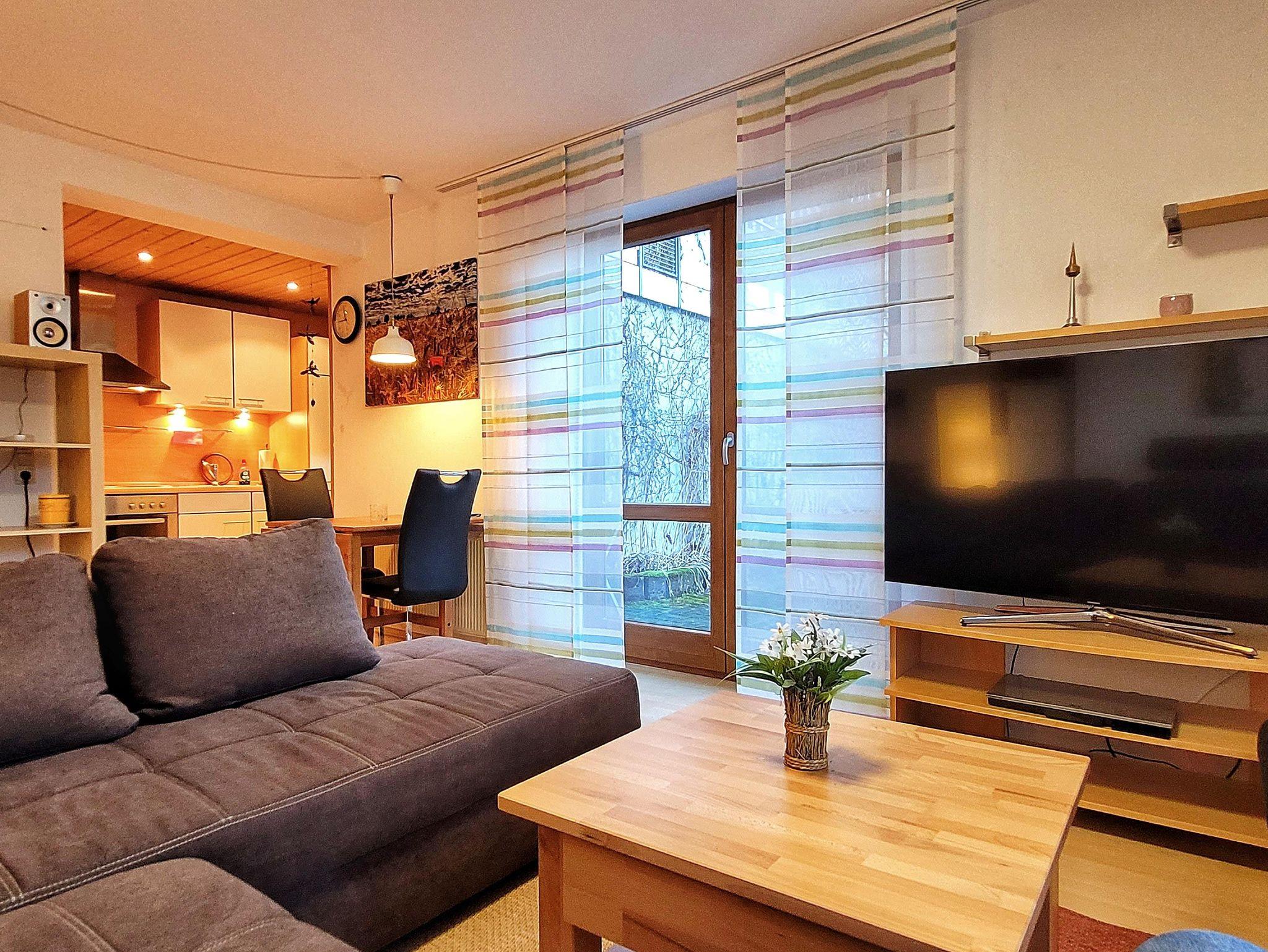 Unsere gemütliche Ferienwohnung mit 50m² Wohnfläche bietet Platz für 1-3 Personen. Das moderne Wohnzimmer mit Schlaf-Sofa und Flachbild-TV mit DVD-Player lädt zum Verweilen ein. Die komplett ausgestattete Küchenzeile mit Kühlschrank inkl. Gefrierfach, Herd, Schwedenofen, Mikrowelle, Wasserkocher, Toaster und Kaffeemaschine lässt keine Wünsche offen. Die Ferienwohnung verfügt über 1 Schlafzimmer mit einem Doppelbett. Das Badezimmer mit Dusche, WC und Haarföhn rundet das Gesamtbild ab. Vor allem im Sommer können Sie entspannte Abende auf der Terrasse verbringen. Das WLAN und den Parkplatz vor dem Haus können Sie kostenfrei nutzen.