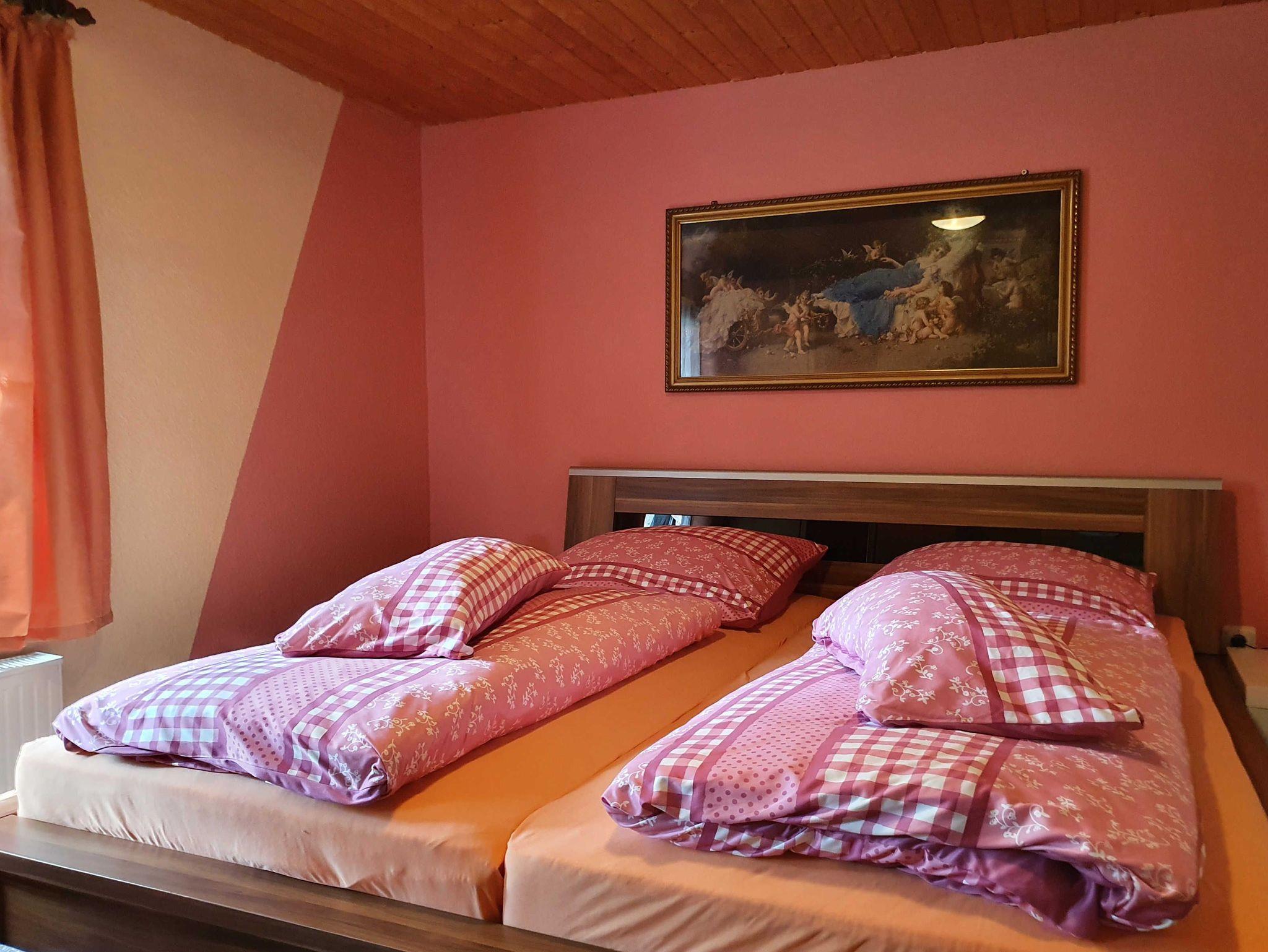 In der separat zugänglichen Ferienwohnung, welche in den Jahren 2016 und 2021 umfassend renoviert wurde, heißt man Sie auf einer Wohnfläche von 45 m² willkommen! Die Wohnung bietet Platz für bis zu 3 Personen, die sich in ein großzügiges Schlafzimmer, ein gemütliches Wohnzimmer mit Schlafcouch, für die dritte Person mit integriertem Küchenbereich und ein Tageslichtduschbad unterteilt. Das Schlafzimmer schenkt Ihnen einen komfortablen Schlaf in einem großzügigen Doppelbett, das von zwei beidseitigen Nachttischen mit Leselampen umgeben ist. Zusätzlich finden Sie zur Verstauung Ihres Reisegepäcks einen Kleiderschrank im Schlafzimmer. Zur Wohnung gehört eine mit Gartenmöbeln möblierte Terrasse inmitten des Gartens an. Hier genießen Sie eine Mahlzeit im Freien. Nutzen Sie den Grill zu einem gemeinsamen Grillabend. Ein Parkplatz steht Ihnen auf dem Grundstück zur Verfügung. Ihr Haustier ist in dieser Wohnung herzlich willkommen!