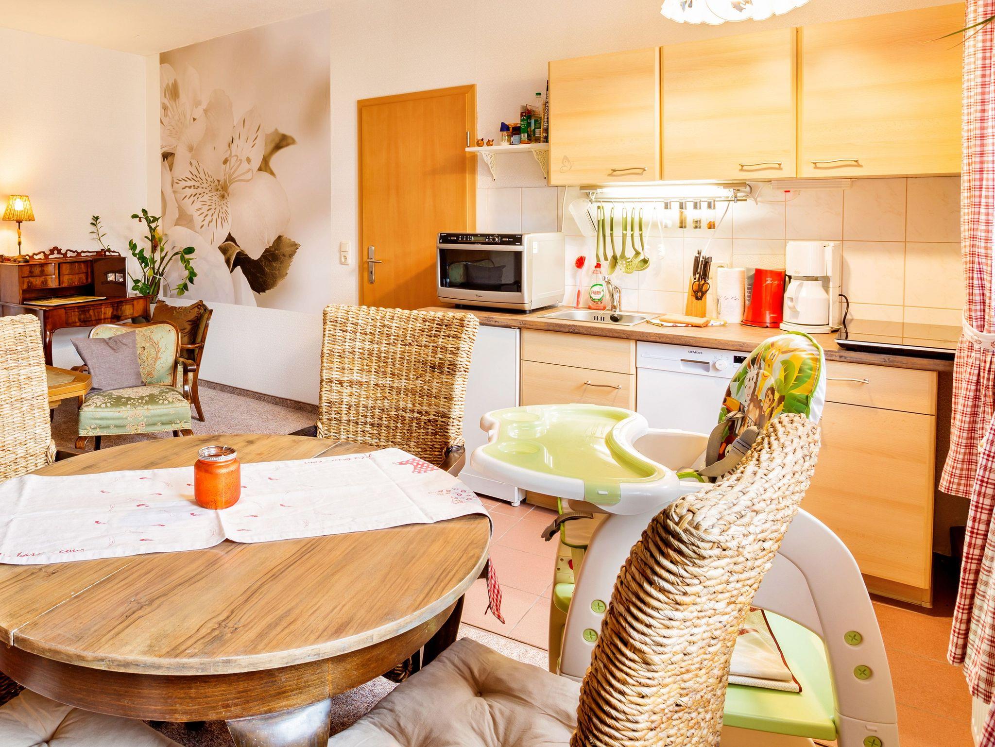 Für Familien mit Kleinkindern ist die 60 m² große Ferienwohnung „Gartenblick“ bestens geeignet. Mit einem separaten Schlafzimmer, Babybett und Kinderstühlchen sowie einer Schlafcouch im Wohnzimmer bietet sie ausreichend Platz für die ganze Familie.