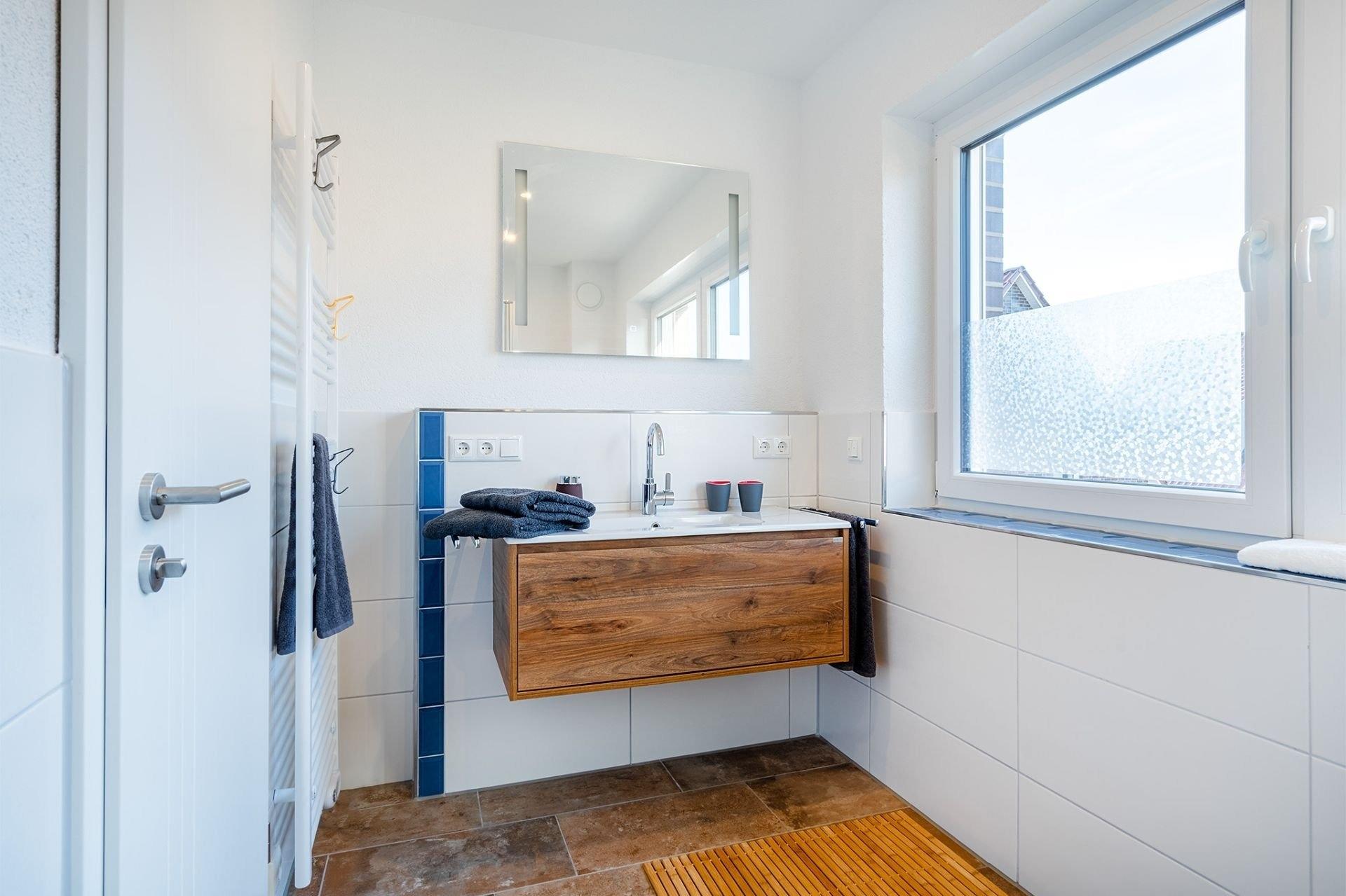Doppelhaus direkt am Badesee Aurich-Tannenhausen.Das modern und liebevoll eingerichtete Doppelhaus Nitschke - FeWo Wurm bietet die Möglichkeit, im Herzen Ostfrieslands Ihren Urlaub zu genießen. Die Ferienwohnung in einer unserer beiden in 2022 neu gebauten Doppelhäusern liegt direkt am idyllischen Badesee in Aurich-Tannenhausen. Jede Doppelhaushälfte verfügt über ~60 m² Wohnfläche und bietet Platz für bis zu vier Personen. Das offengestaltete Erdgeschoss mit Koch-/ Wohn- und Essbereich sowie die daran anschließende Terrasse mit direktem Seeblick laden zum Wohlfühlen ein. Im Obergeschoss befinden sich zwei gemütliche Schlafzimmer und ein großes Tageslichtbad mit begehbarer Dusche, Waschbecken und WC. Parkplatz für PKW ist direkt am Haus. Größere Familien dürfen gerne beide Doppelhaushälften zusammen reservieren.