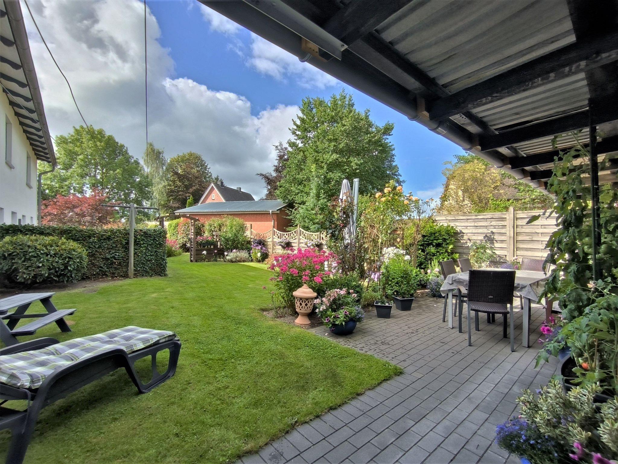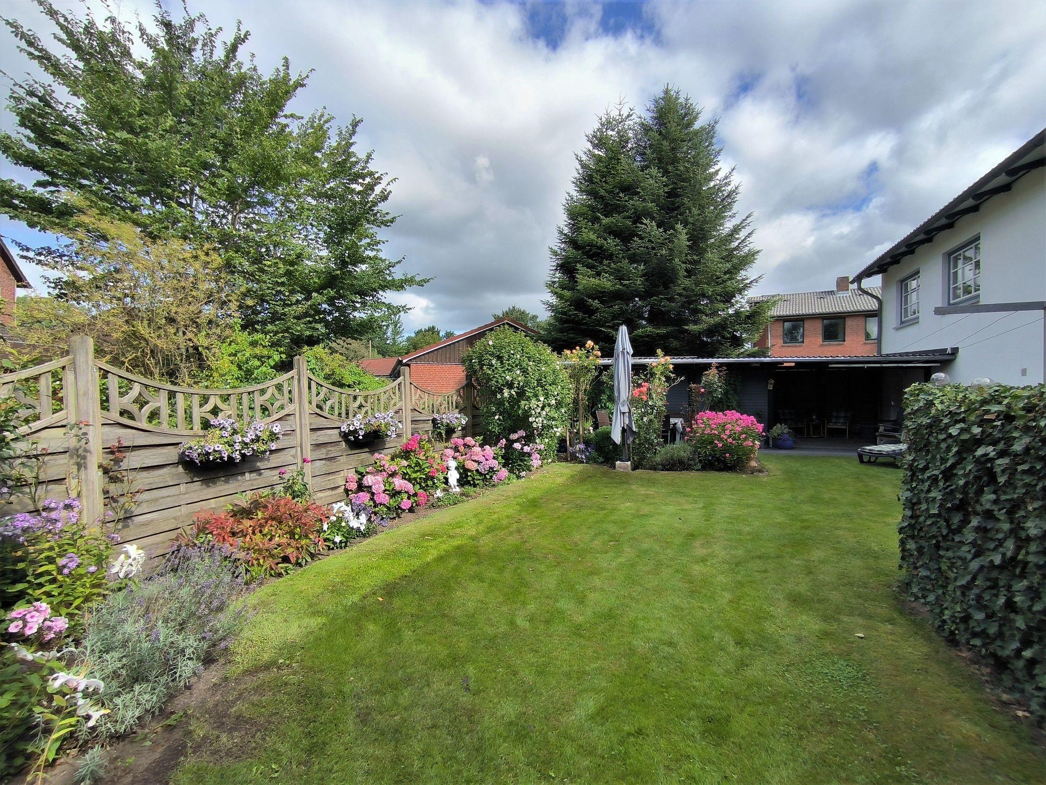 Die Wohnung ist ca. 75 qm groß und besteht aus einem Wohnzimmer, zwei Schlafzimmern, einer Küche mit Essbereich sowie einem Duschbad. Zur Wohnung gehört eine eigener, mit verschiedenen Gartenmöbeln und Sitzecke ausgestatteter und liebevoll bepflanzter Garten. Das große und aufwändig angelegte Grundstück ist vollständig eingezäunt und besticht trotz der zentralen Lage im Ort mit Ruhe und Abgeschiedenheit.