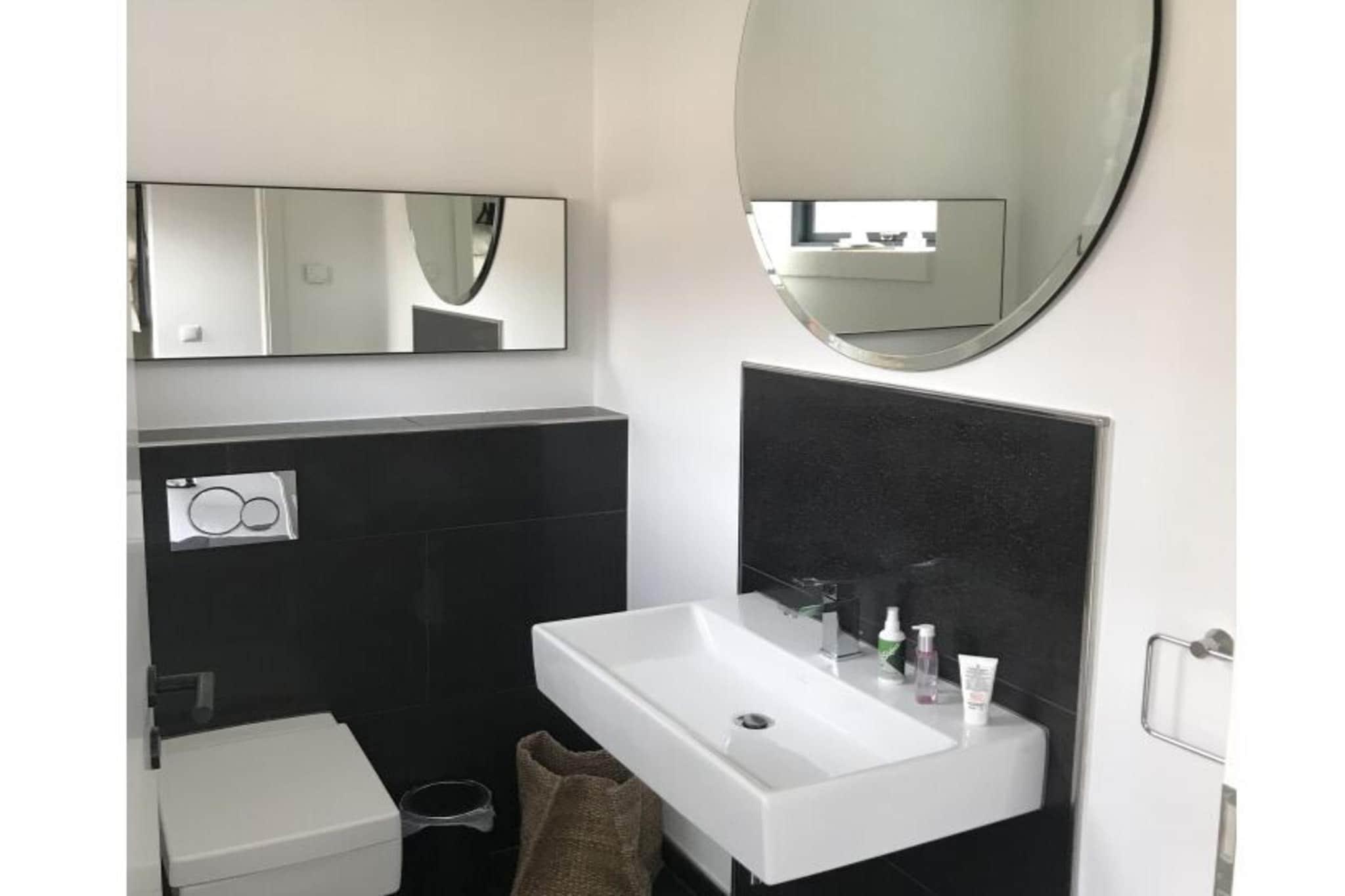 Good things come to those who wait. We've known Britta (...bakes the best cakes in all of Eiderstedt...) and Robert (...has a knack for business, real estate, and beautiful things...) for a long time, and when we saw they were looking to sell their wonderful house, everything happened pretty quickly. A new, Scandinavian-style home on one level – right in the heart of Tating Village, with a sand dune dotted with beach grass – this combination of Danish charm and modern design makes the property simply HYGGE. Inside – 150 perfectly divided, ground-level square meters, plus two large south-facing terraces for relaxed outdoor living, allowing for maximum relaxation without any fuss. And the new pearl in the necklace from THE ROOMS is a real eye-catcher! If you like modern – HERE YOU GO – this is the way: Black floors with underfloor heating, contrasting with smooth white walls – that's the HOOK-LINE. A luxury kitchen of the finest quality, bathrooms to die for, four double bedrooms, a dining table with Eames chairs where you can also play billiards, plus an XXL sofa massage the senses like the BASS-LINE in your favorite song. Many, many floor-to-ceiling windows let light into the spacious living-dining area, provide views to the terraces, and connect the inside and outside of the house into a wonderful arrangement. Speaking of outside – both terraces are perfectly equipped. One for sun worshippers with a beach chair and beach club seating area. The other one features lounge furniture, a barbecue area, and a glass roof, which is also a great place to sit when the weather gods aren't in a good mood – OR we have one of those tropical nights in the summer (we're supposed to be getting more of them...). The story of Room 27a wouldn't be complete without the sauna area – ideal as an ONTRO after an eventful day – rain or shine. Oh yes, and as always, THE ROOMS offers complete reduced-to-the-max amenities: - Large double-sided fridge-freezer combination ? Including egg cube maker - Wine refrigerator - Steamer - Microwave - Miele washing machine - Miele tumble dryer - Dishwasher - Boxspring beds - Bose sound system - Flat-screen TVs - Acoustic ceilings - Walk-in showers - Bathtub - Built-in wardrobes - Carport - Beach chair - Garden furniture - Weber grill - Fenced (rear) dune property Everything else you need to relax and settle in is there – we promise – from A for ALL crockery, glasses, and cutlery, to B for bed linen, towels, and bathrobes, to Z - ACCESSORIES so you can play billiards... And as INFO for all workaholics who can't really let go, even on vacation. The Eiderstedt peninsula, and therefore also Tating, both have NO good network connections. Fiber optic or other high-speed networks are not as well-developed as you might be used to at home (and neither are we...). Therefore, a Wi-Fi connection has been set up for you via a Vodafone GigaCube from the mobile network, which (mostly) does its job flawlessly for normal household use (web surfing, listening to music, TV video streaming). Unfortunately, it's not suitable for supporting commercial image editing programs and office-quality video conferencing – you don't want that on vacation anyway (if you're honest...). We cordially invite you to try out ROOM 27a and be our guest. Our goal isn't to achieve the highest possible occupancy rates – we want to offer quality time and help you make the most of your precious free time for relaxation.