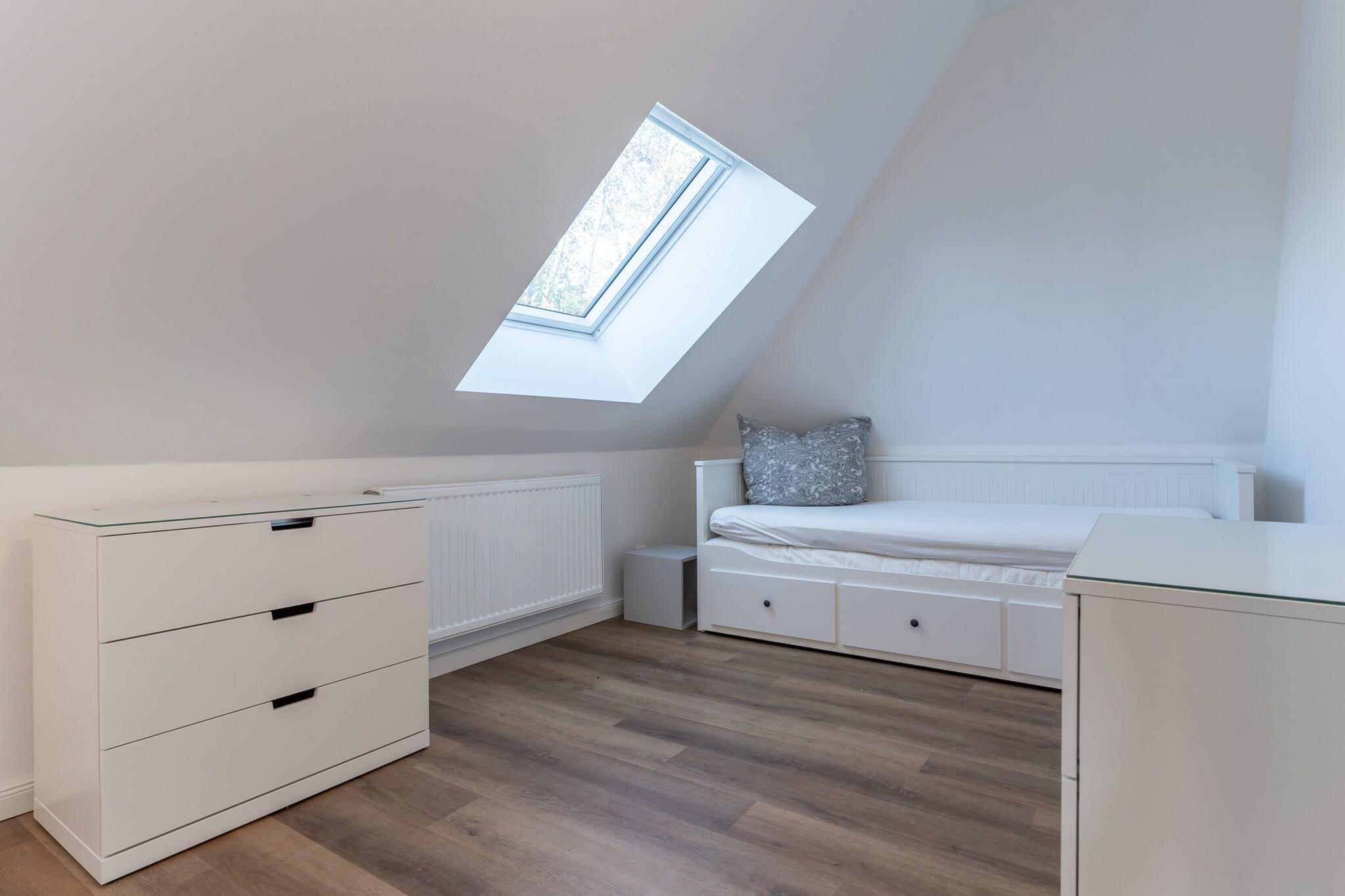 Ground floor: (Kitchen(hob(4 ring stoves, induction), electric kettle, toaster, coffee machine, oven, dishwasher, fridge(+ freezer)), Living/diningroom(single sofa bed, TV(flatscreen), dining table, radio), bathroom(tumble dryer, shower, washbasin, toilet, washing machine, hairdryer)) Attic: (bedroom(double bed(180 x 200 cm)), bedroom(double bed(140 x 200 cm), double trundle bed(80 x 200 cm, 160 x 200 cm)), bathroom(shower, washbasin, toilet)) heating, terrace, garden, garden furniture, parking, Laundry Package incl.