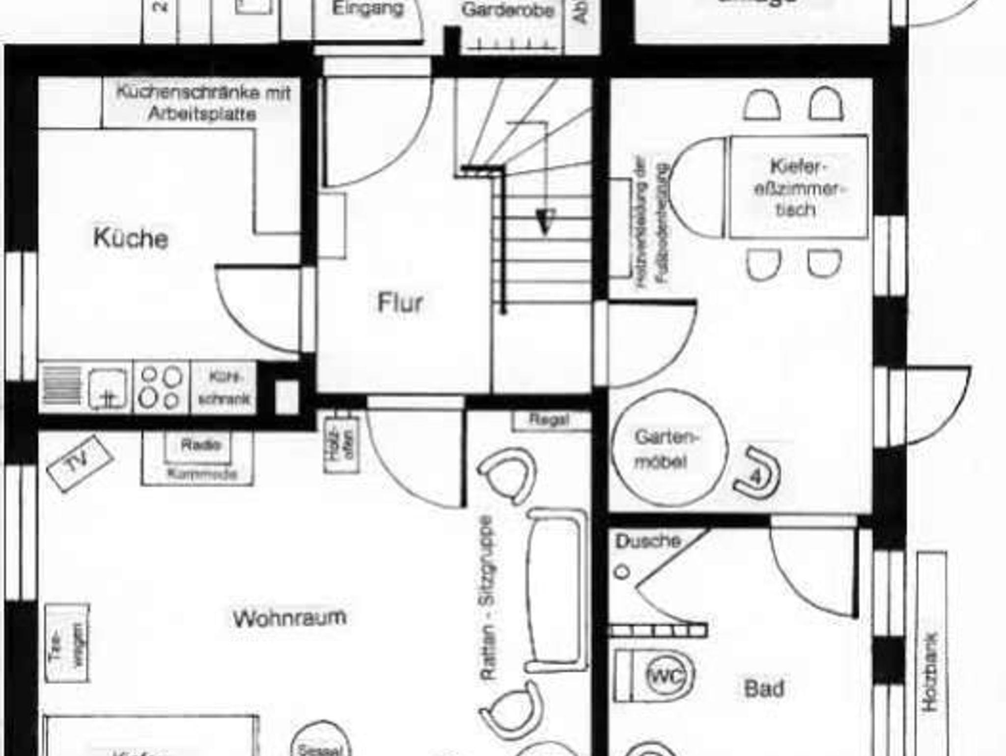 Erdgeschoss: Wohnzimmer mit norwegischem Holzofen, SAT-TV, Radio mit CD-Player, kleines Esszimmer.