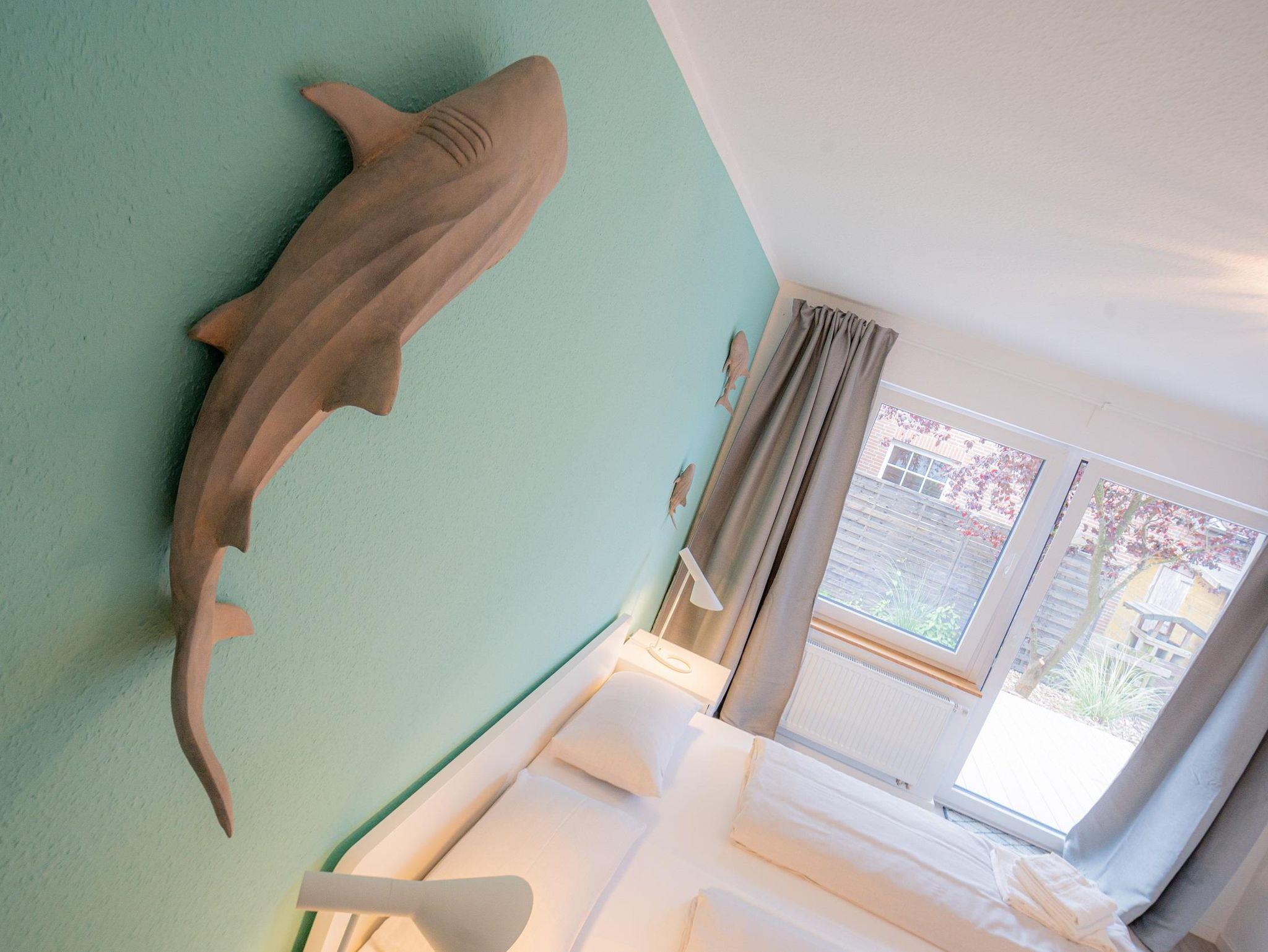 Die im Erdgeschoss gelegene, im skandinavischen Stil hochwertig eingerichtete Ferienwohnung verfügt über 3 Schlafzimmer für maximal 6 Personen, die alle mit Doppelbetten (180 x 200 cm), Nachttischen und Kleiderschränken ausgestattet sind. In einem Schlafzimmer befindet sich ein Fernseher mit SAT TV Anschluss. Bei den Matratzen handelt es sich um Wendematratzen in mittelfester und fester Qualität, die Sie Ihren Bedürfnissen entsprechend anpassen können. In einem Schlafzimmer befindet sich zudem ein kleiner Arbeitsplatz mit Schreibtisch, der auch wunderbar als Homeofficeplatz genutzt werden kann.