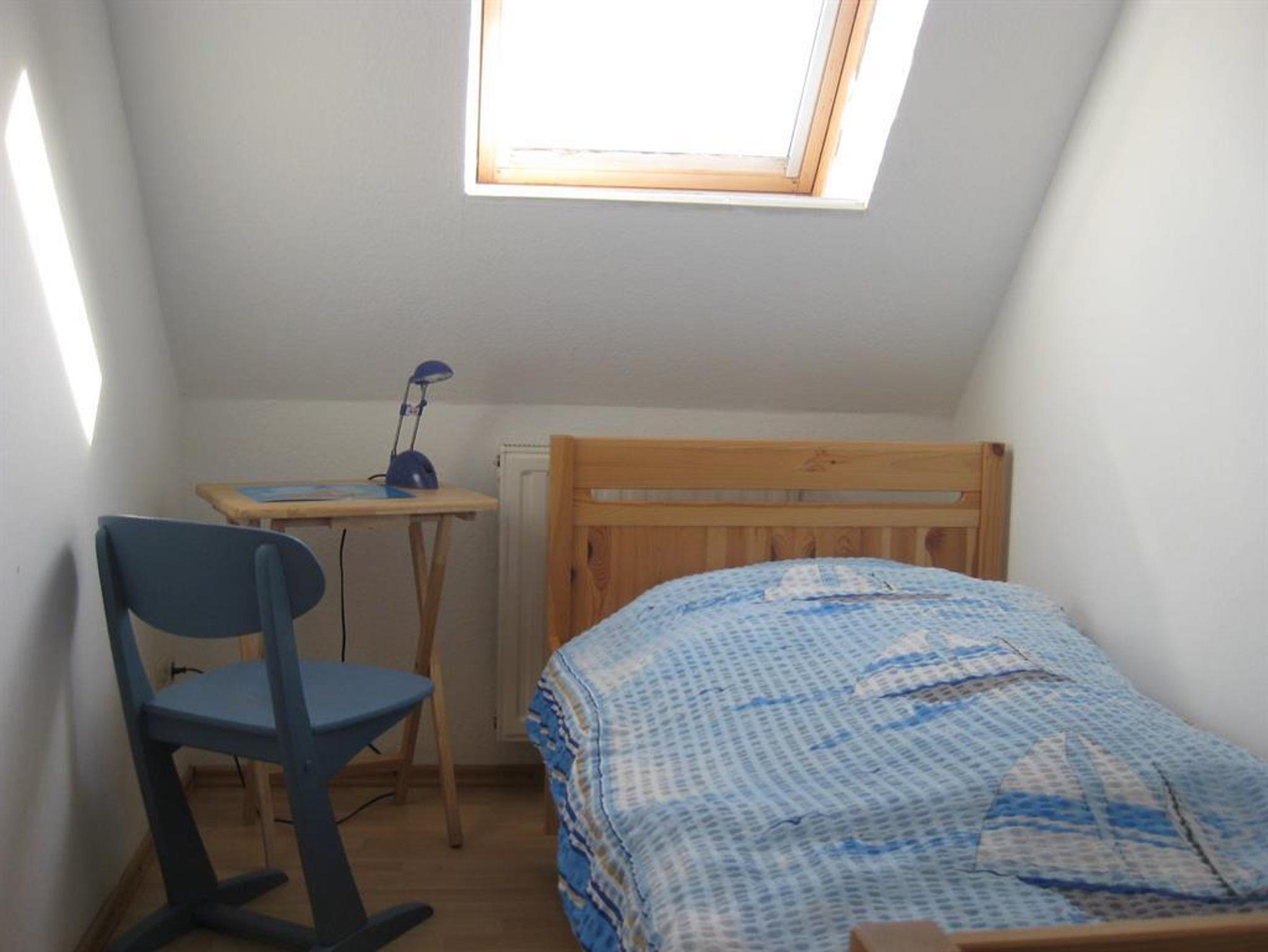 Durch einen separaten Eingang gelangt man in die geräumige Wohnung. Das helle Wohnzimmer lädt mit Kaminofen und Essecke zu gemütlichen Stunden ein. Die große Schiebetür führt auf die Südterrasse und in den Garten. Das Schlafzimmerin der oberen Etage hat Zugang auf einen großen Balkon. Das Lesezimmer kann auch als Schlafzimmer für ein kleineres Kind genutzt werden.