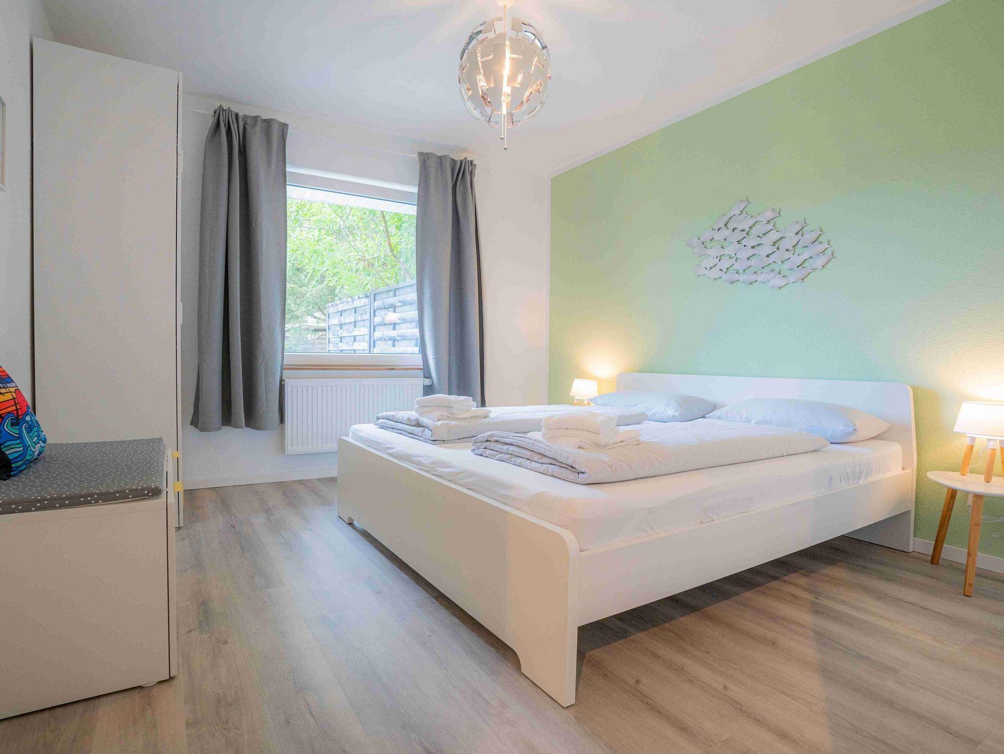 3. Schlafzimmer mit Doppelbett (2x 90x200cm), Kleiderschrank und Spielzeugkommode.