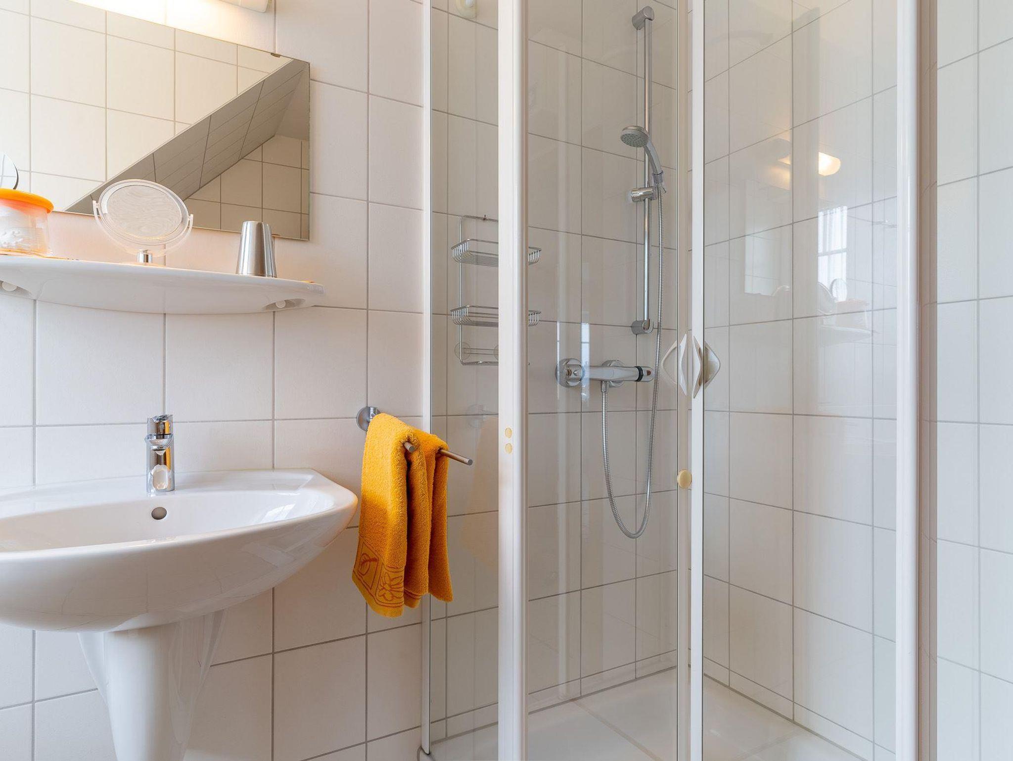 Das Duschbad bietet Ihnen viel Stauraum für Ihre Utensilien.