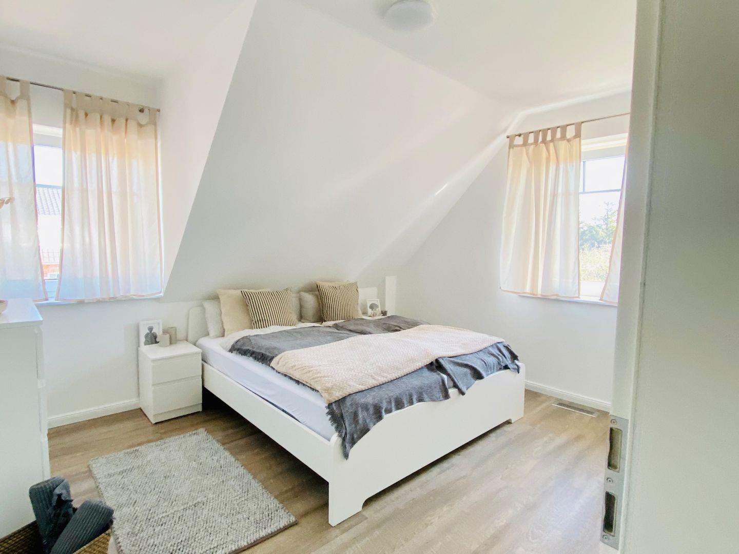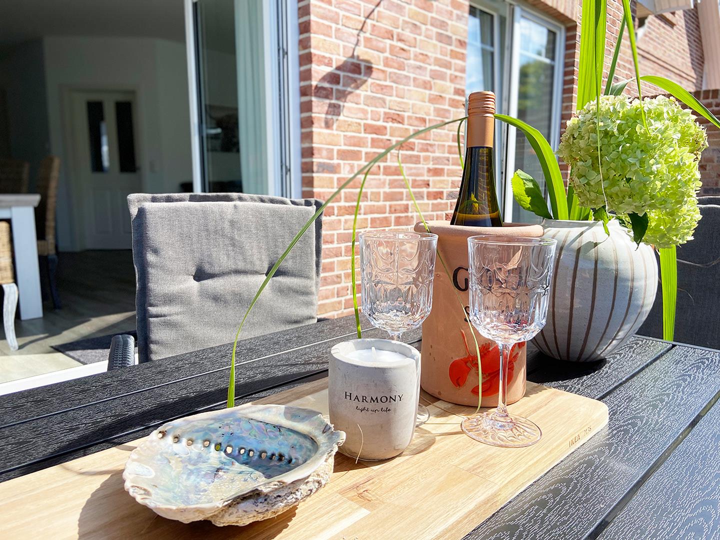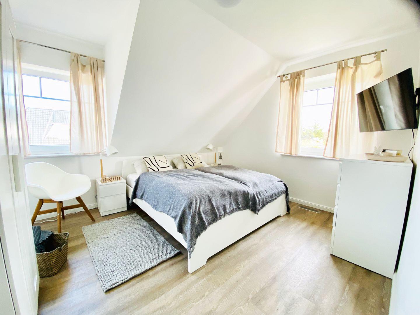 Die Doppelhaushälfte bietet auf knapp 110 qm, verteilt auf zwei Ebenen, Platz für bis zu 6 Personen. Der gelungene Schnitt umfasst helle, lichtdurchflutete Zimmer mit Fußbodenheizung. Modern und freundlich eingerichtet, verspricht die Einrichtung sofortiges Wohlfühlen. Der Eingangsbereich mit Garderobe führt zum großzügigen Wohn-Essbereich mit offener, umfangreich ausgestatteter Küche für gemeinsame Mahlzeiten und Spielabende. Die sonnenverwöhnte Terrasse und der Garten mit Gartenmöbeln und Sonnenschirm laden zum Entspannen ein.