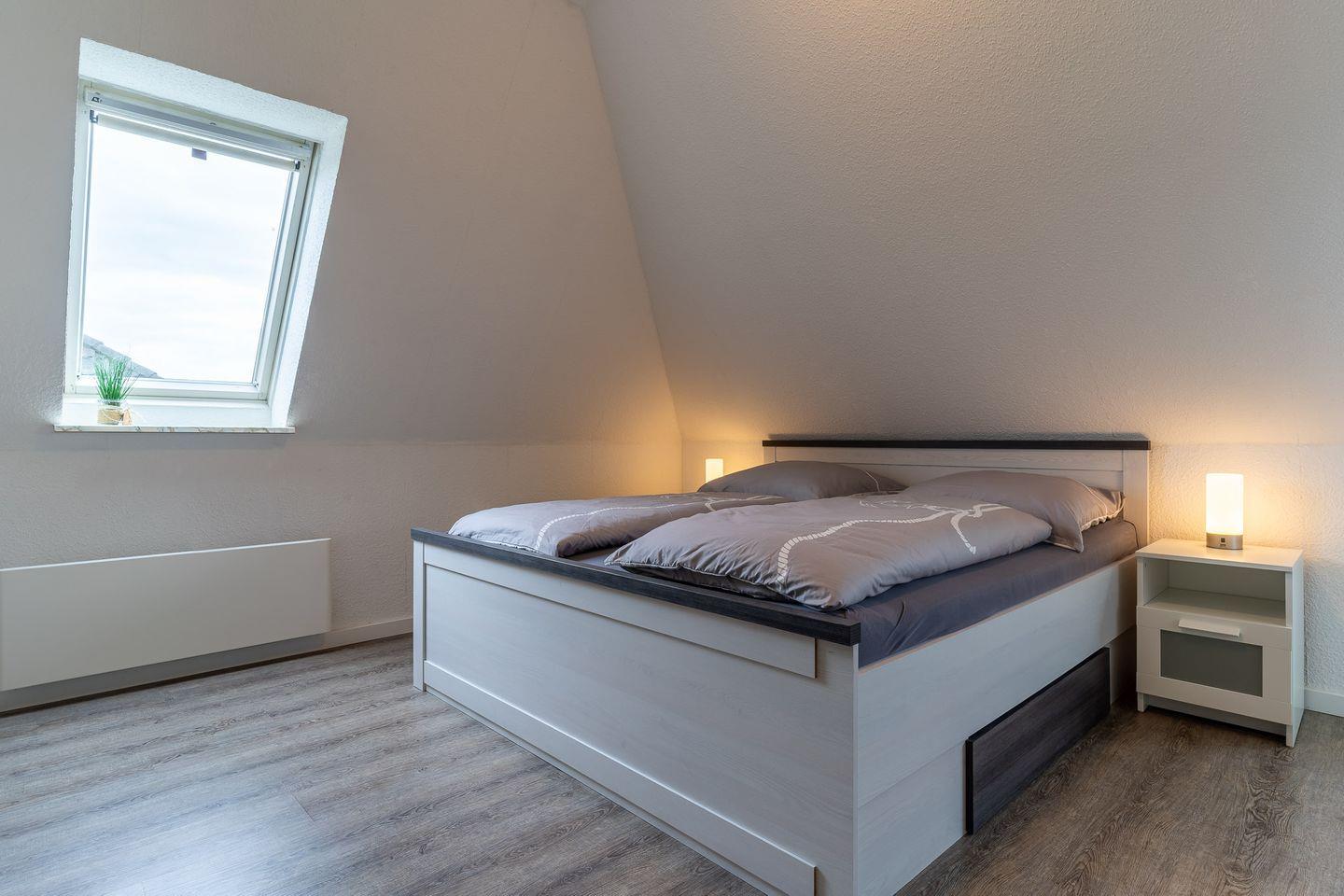 Herzlich willkommen in der ca. 70 Quadratmeter großen Ferienwohnung mit kleinem Balkon ( neu ) im 1. Obergeschoss eines Einfamilienhauses in Tating. Diese geschmackvoll eingerichtete Wohnung bietet Platz für bis zu 4 Personen und verfügt über ein Wohn-Esszimmer mit großem Esstisch, bequemen Stühlen, einem Zweier-Sofa mit zwei Sesseln und einem Fernseher. Außerdem gibt es ein Schlafzimmer mit einem gemütlichen Doppelbett und ein Schlafzimmer mit zwei Einzelbetten. Für ausreichend Stauraum ist gesorgt.