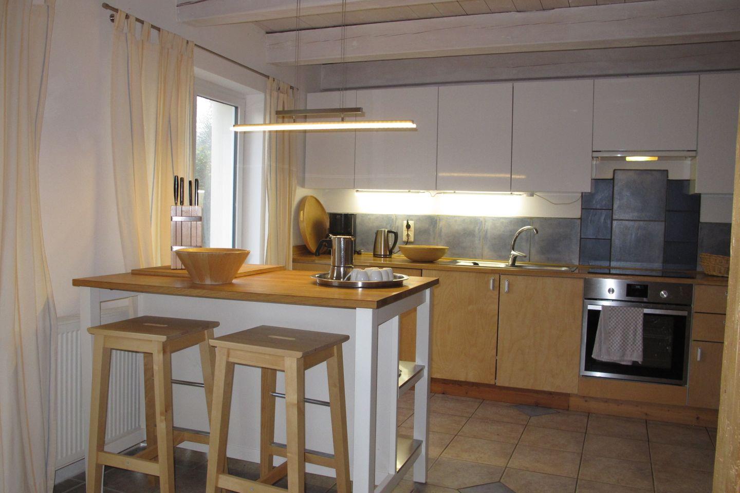 Großzügig eingerichtete Küchenzeile mit allem Zubehör (Ceranfeld, Backofen, Spülmaschine, Wasserkocher, Toaster, usw.)