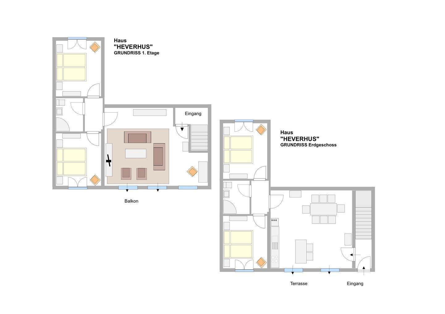Das Ferienhaus „HeverHus“ ist als „Haus im Haus“ angelegt. Es ist 125 qm groß und erstreckt sich über zwei Ebenen. Das Haus bietet mit zwei Doppelschlafzimmern je Etage, einem geräumigen Duschbad auf jeder Etage, einer großen Wohnküche und dem komfortablen Wohnraum den notwendigen Wohnkomfort für entspannte Urlaubstage – auch in großer Runde (bis 8 Personen). Zu dem Haus „HeverHus“ gehört ein eigener Garten mit Terrasse und ein Balkon.