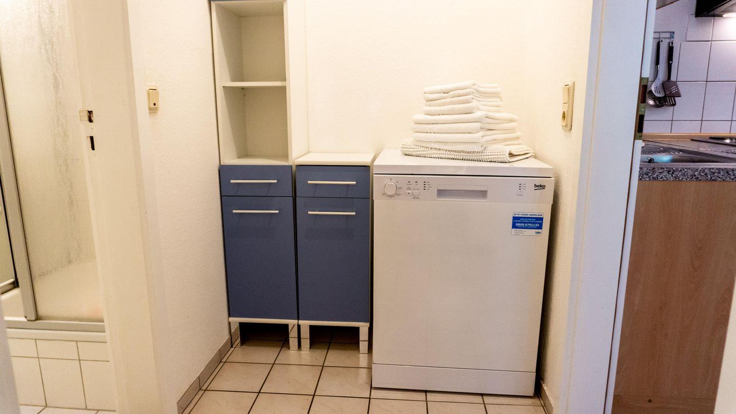 Das Badezimmer der Wohnung ist mit einer Dusche ausgestattet. Ein Haartrockner ist ebenfalls vorhanden, damit Sie sich ganz wie zu Hause fühlen können. Zusätzlich stehen Ihnen Waschbecken und WC zur Verfügung.