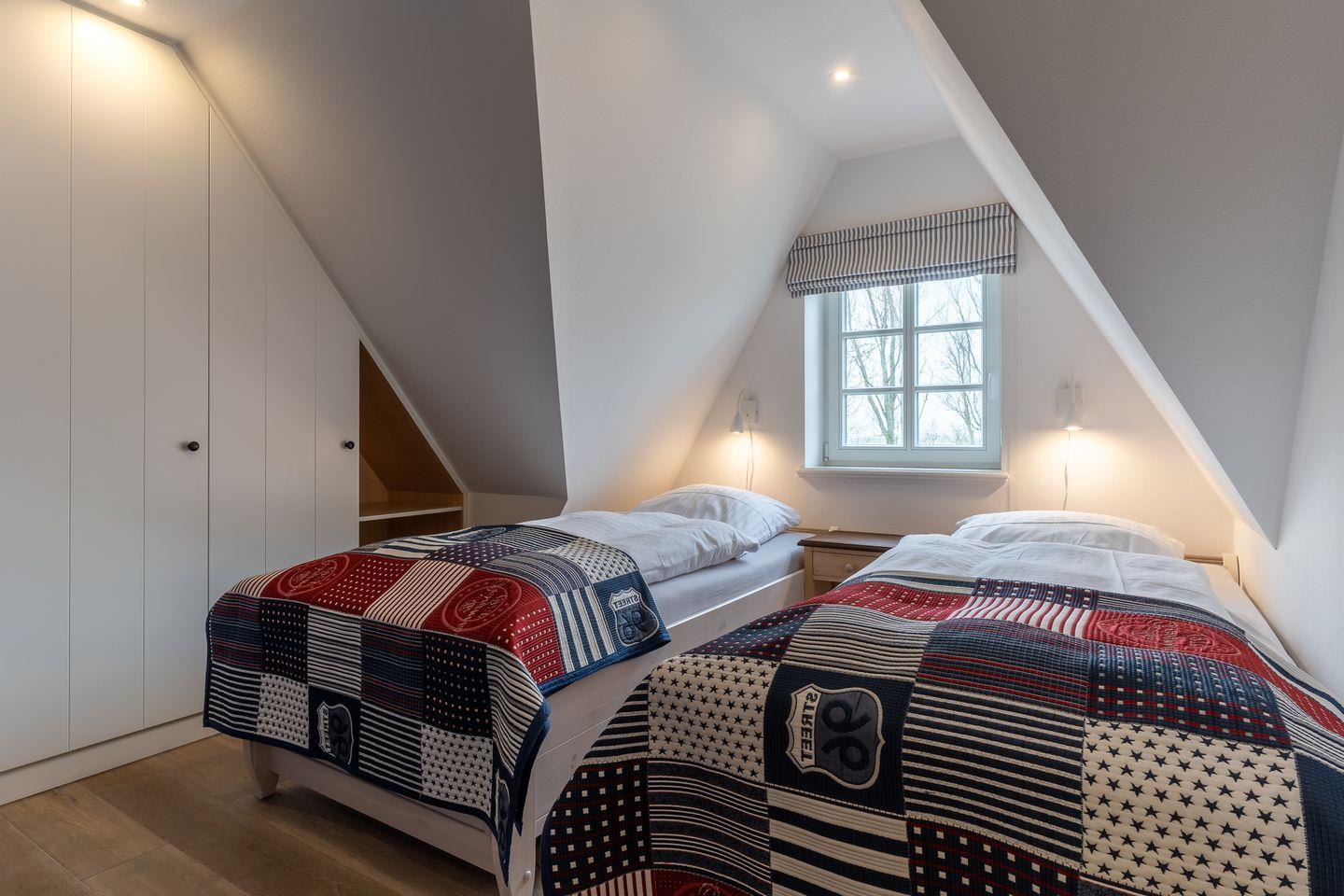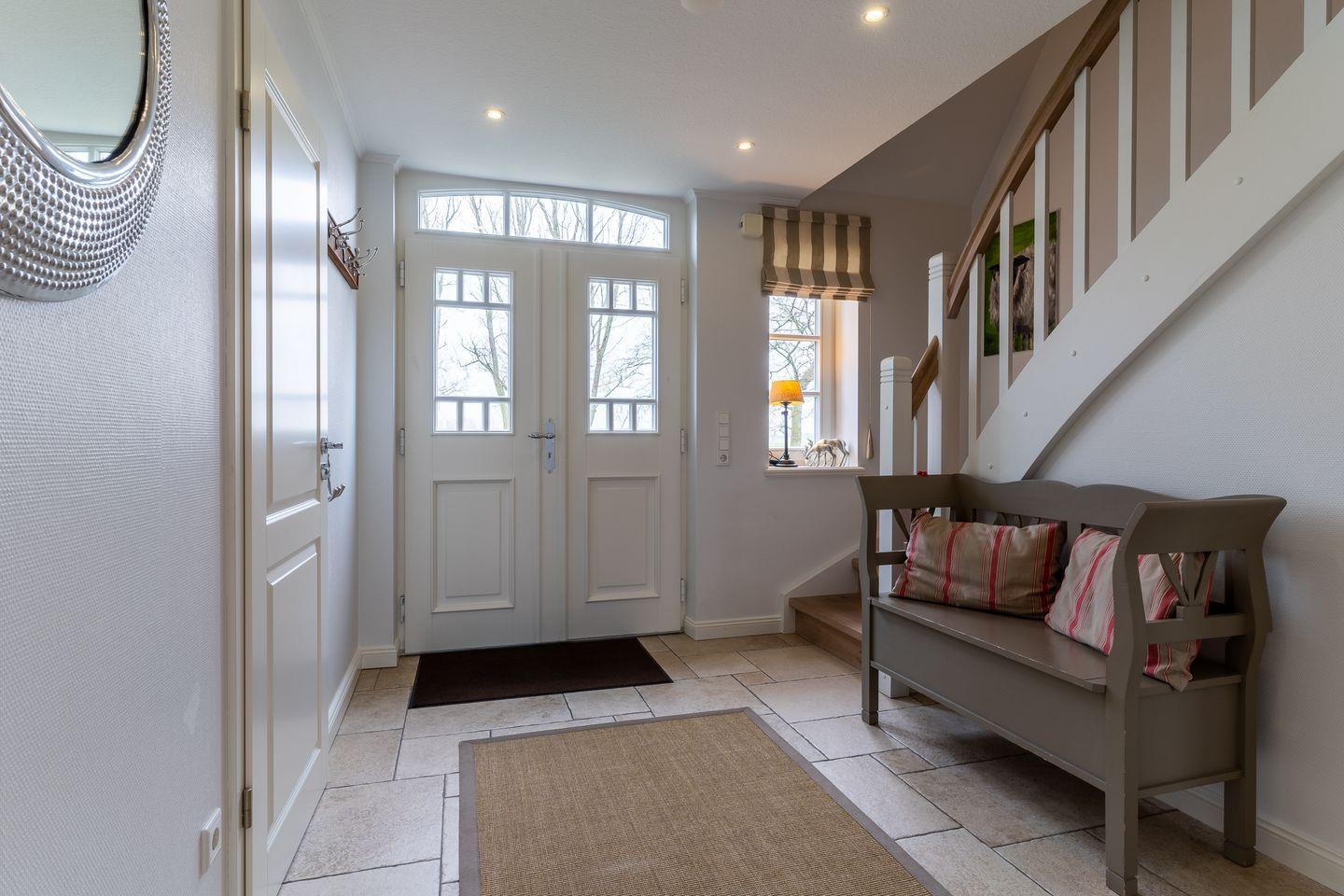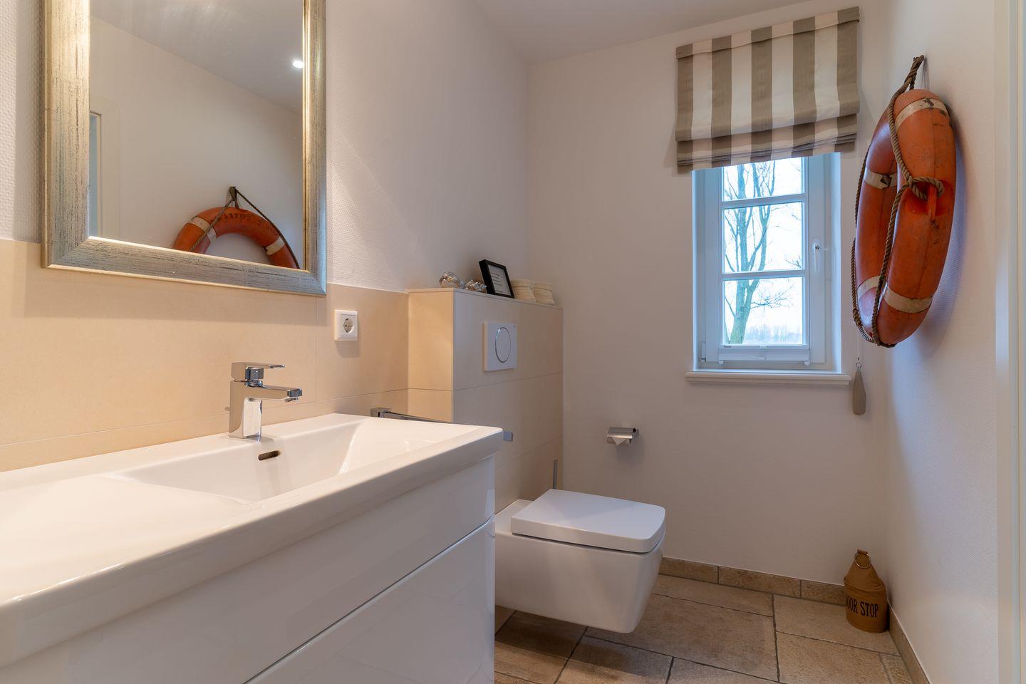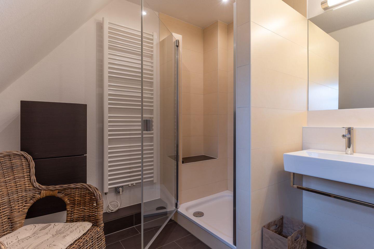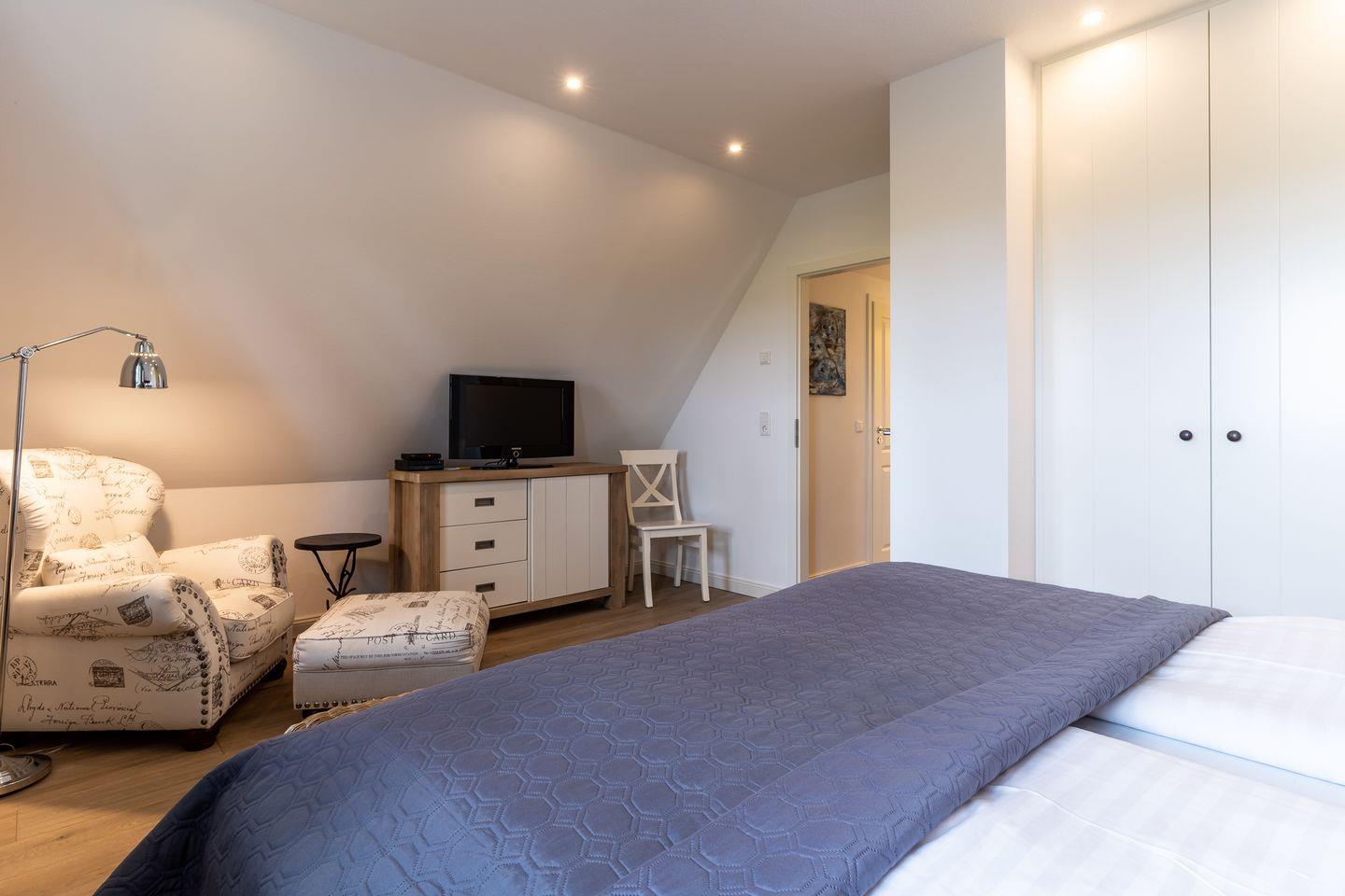Eine Haushälfte unter Reet, ca. 100 m² Wohnfläche auf 2 Ebenen, auf großzügigem Grundstück mit ca. 1.200 m² und Terrasse. Im EG befinden sich ein Duschbad mit barrierefreier Dusche und WC, ein Schlafzimmer mit einem 1,60 x 2 m Doppelbett, das gemütliche Wohn/Esszimmer mit Kaminofen, offener, hochwertiger Küche sowie einem Wirtschaftsraum mit Waschmaschine. Im OG befinden sich das großzügige Elternschlafzimmer mit Boxspringbett 1,80 x 2 m und einem Einbauschrank, ein Kinderzimmer mit zwei Einzelbetten 1 x 2 m plus Einbauschrank sowie einem Duschbad mit Komfortdusche, Doppelwaschbecken und Handtuchheizung und WC. Im gesamten Haus liegt eine Fußbodenheizung, im EG unter Fliesen im OG unter weiß gekalkten Eichendielen.