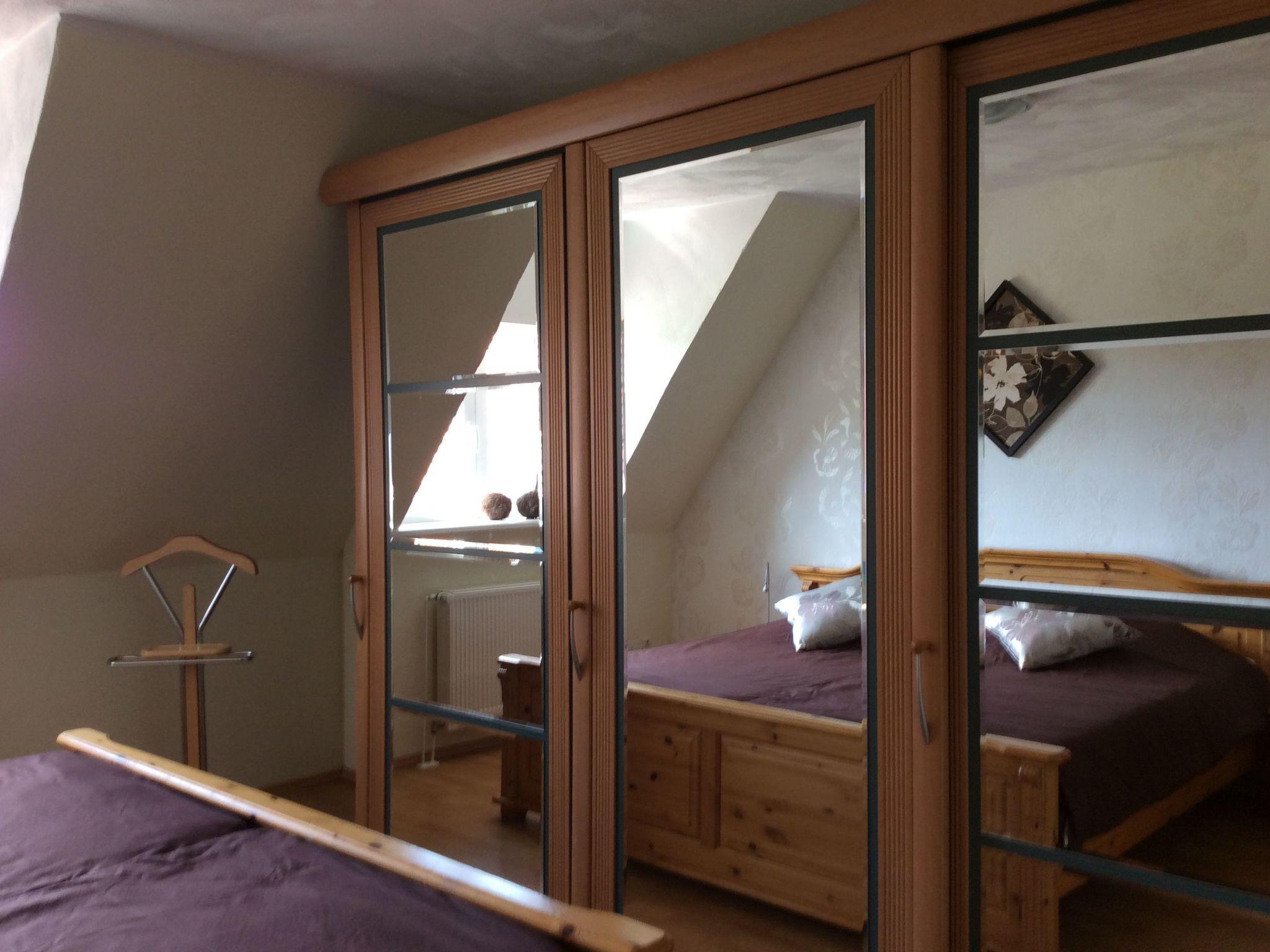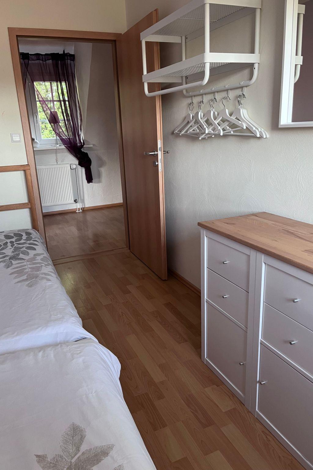 With a living space of approx. 85 m², this accommodation offers enough space for a maximum of six people. The living room has a cosy sofa, a coffee table and a flat-screen TV. A children's painting corner, a children's play corner and two single beds (0.90 metres wide) behind a partition. The kitchen is fully equipped with an oven, fridge, hob, dishwasher, toaster, kettle, egg boiler, fully automatic coffee machine and a dining table with four chairs (two additional chairs are also available in the flat) so that you can start a relaxing holiday. In the bedroom there is a double bed (2 metres wide) and a large wardrobe. Behind the next door you will find another bedroom with two beds facing each other and shelves for your clothes. The bathroom features a walk-in shower, two washbasins, a WC and a hairdryer. The landlord will be happy to provide you with a highchair and a cot/baby bed free of charge on request. There is heating in all rooms of the flat and WLAN is also available throughout the flat free of charge.