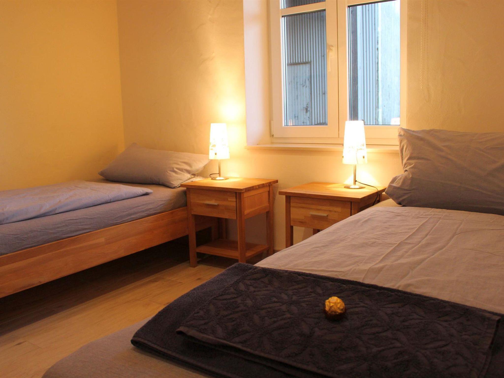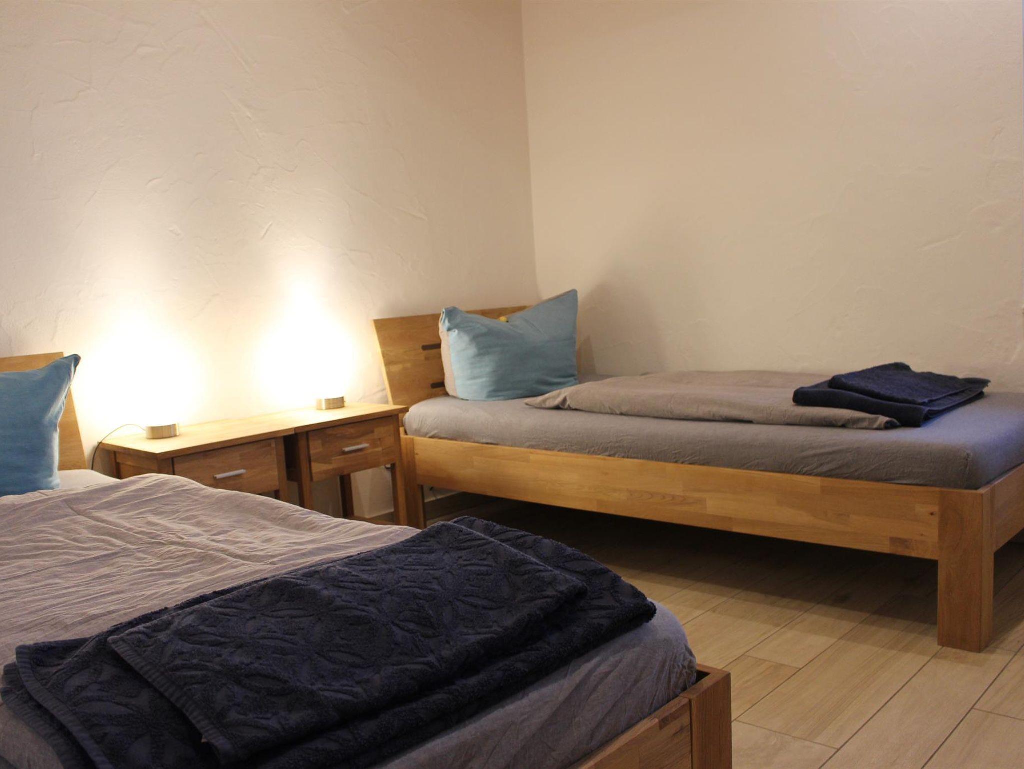 In den hellen und freundlichen Schlafräumen mit alten Balkenlagen, kann entspannt geträumt werden. Die Schlafräume sind mit einem Doppelbett und 2 einzeln stehende Betten ausgestattet.