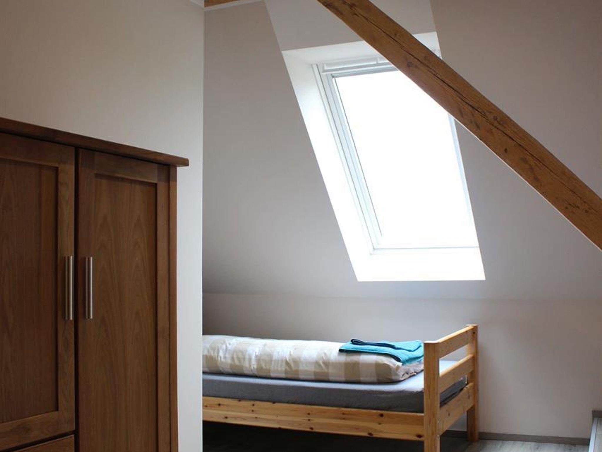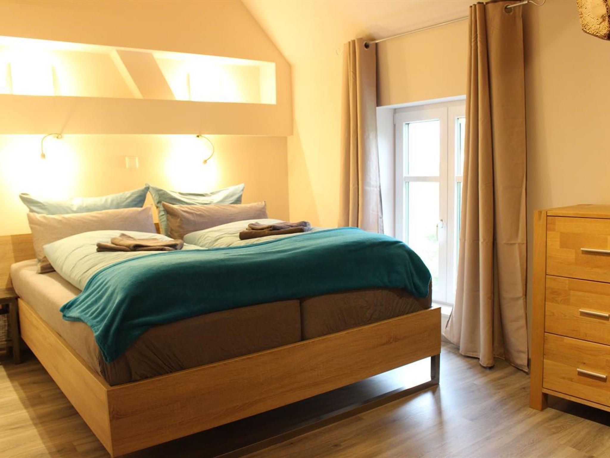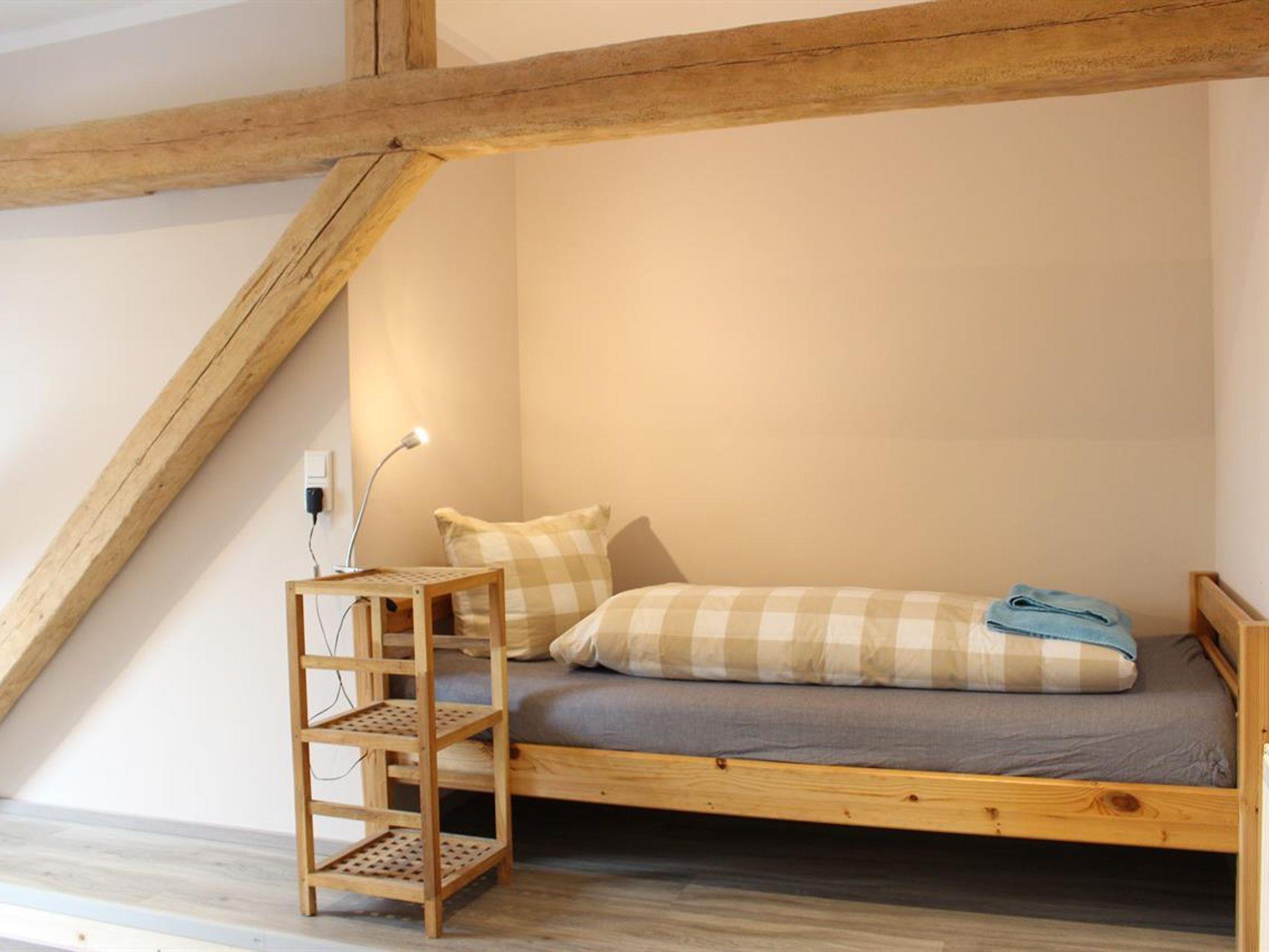 In den hellen und freundlichen Schlafräumen mit alten Balkenlagen, kann entspannt geträumt werden. Zwei der Schlafräume sind mit einem Doppelbett (mit hochwertigen Boxspringenmatratzen) ausgestattet, ein weiterer Schlafraum mit zwei Einzelbetten.