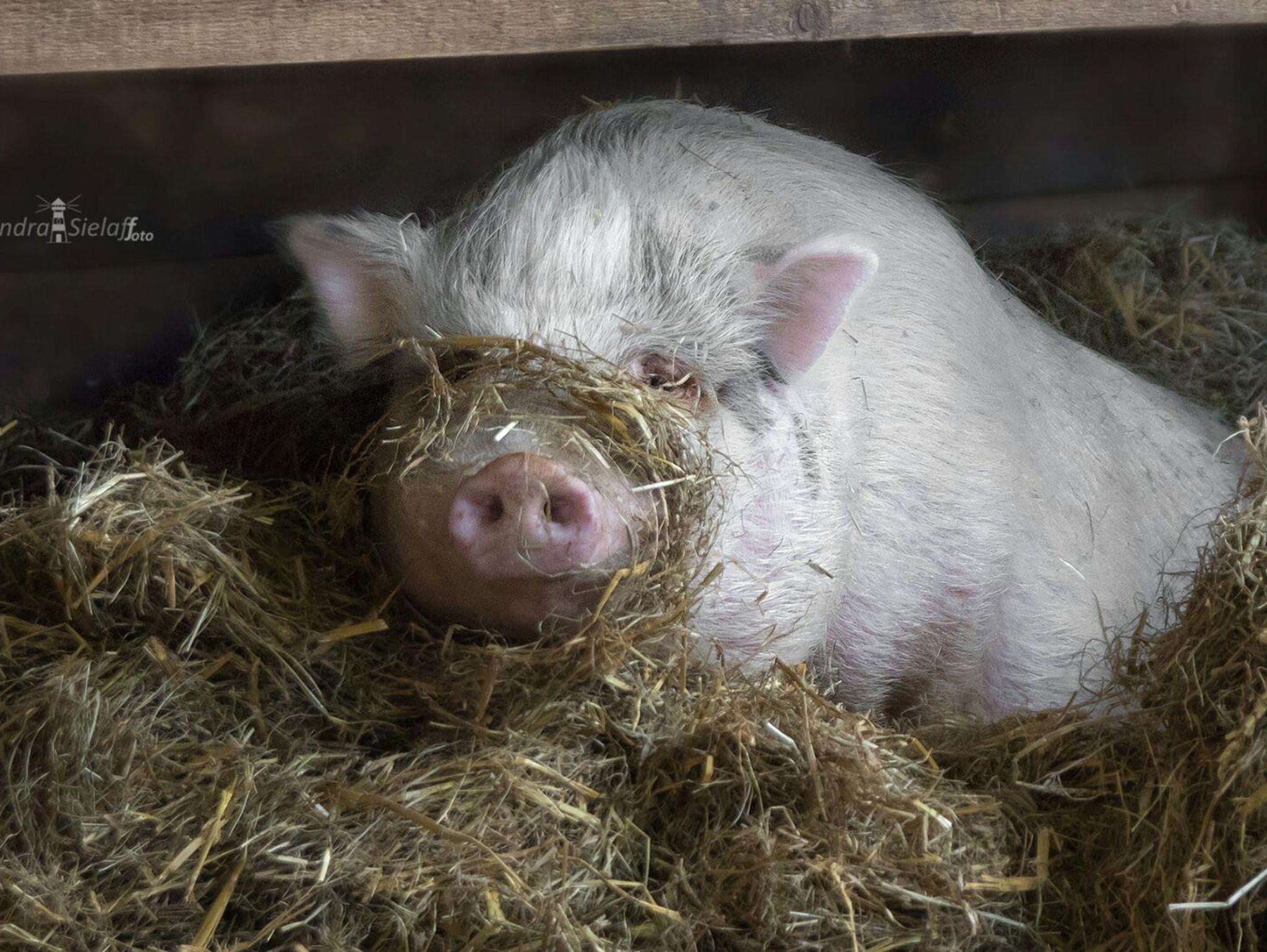 Unsere Tierfamilie auf dem Bauernhof besteht aus verschiedenen Kleintieren wie Meerschweinchen, Kaninchen, Katzen, zwei Minischweinen, Schafen, Lämmern, mehreren Pferden und Ponys und unserem Hund Mika.