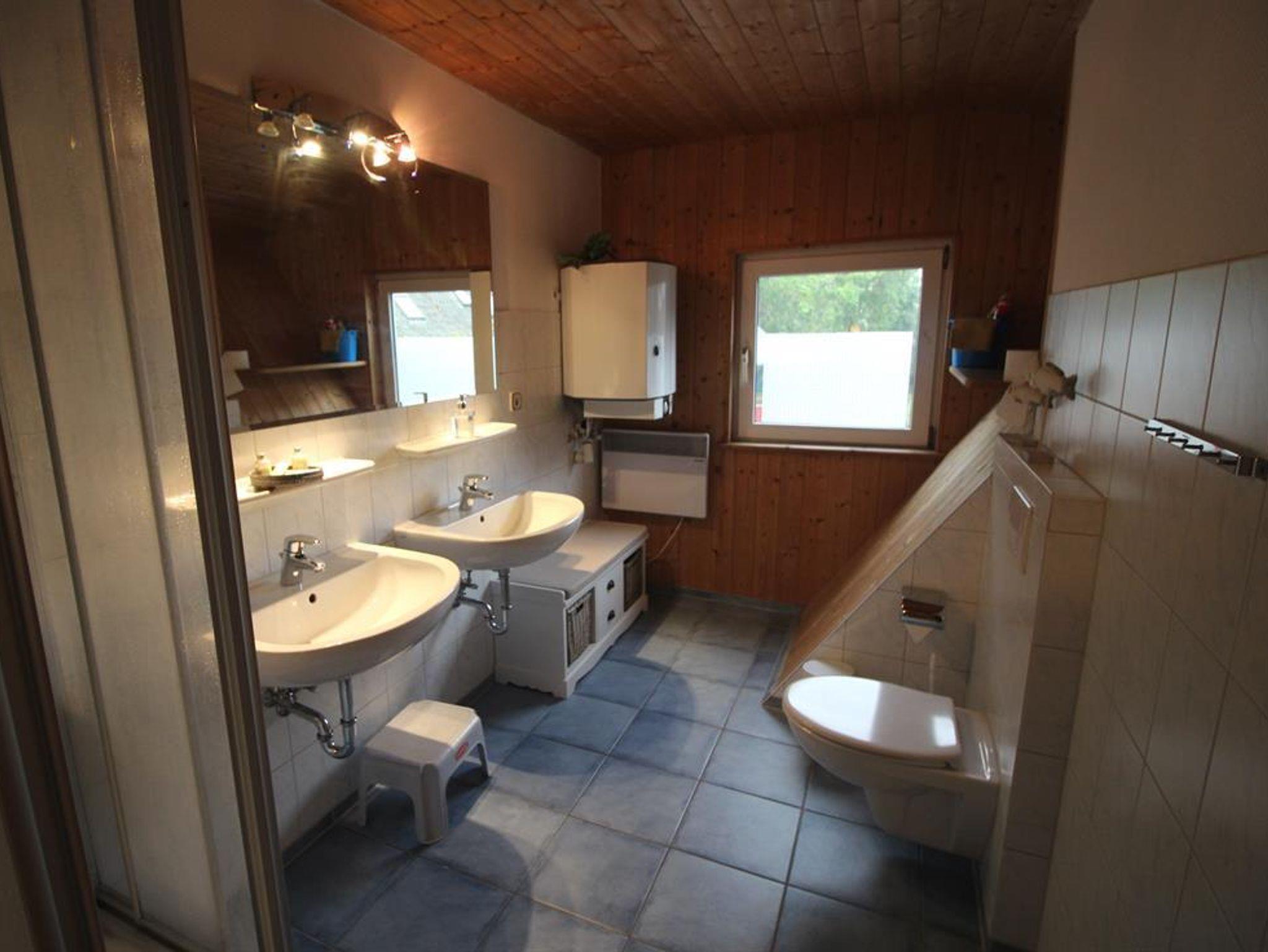 In dem ersten Schlafzimmer gibt es ein Doppelbett, in dem zweiten und dritten gibt es zwei Einzelbetten und in dem vierten steht ein Schreibtisch und ein Sofa. Dort ist außerdem Platz für ein Kinderbett. In allen Schlafräumen sind Schränke für Ihre Garderobe vorhanden. Die beiden Duschbäder/WC verfügen über ausreichend Ablageflächen und ein Fenster zum Lüften. In einem der Duschbäder sind 2 Waschbecken vorhanden.
