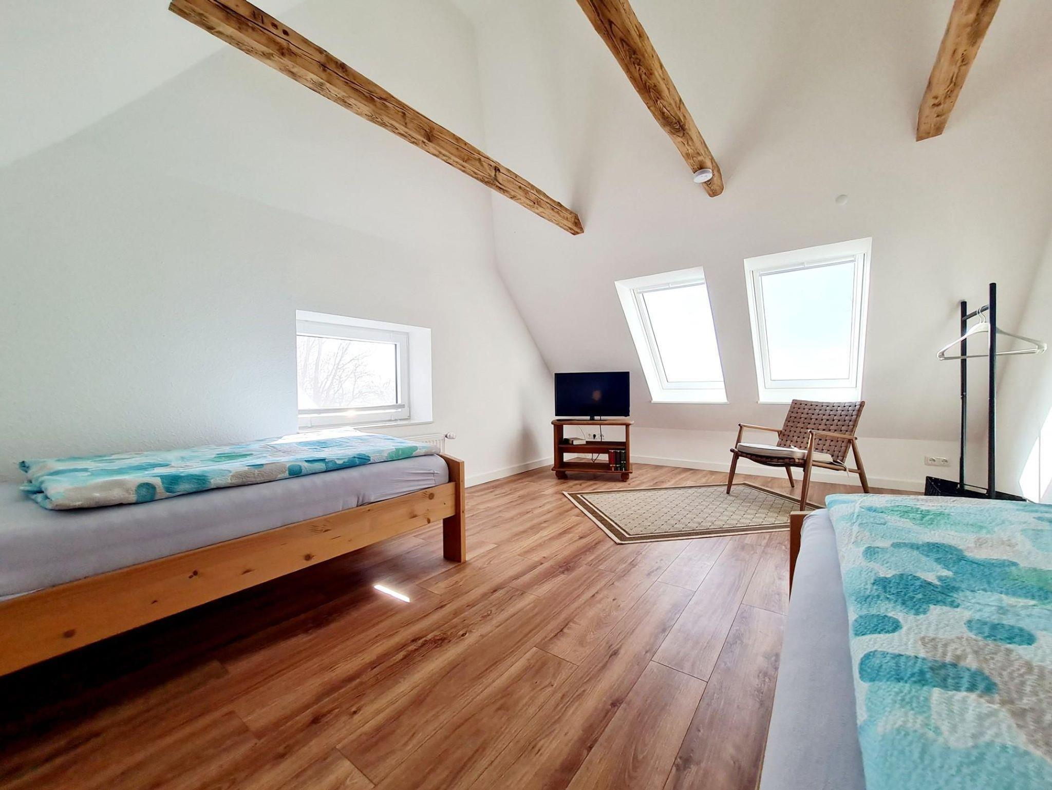 • 1 Schlafzimmer mit einem 140 cm breiten Bett