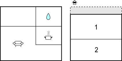 Badezimmer (nr. 1) - WC. Warmes und kaltes Wasser. Dusche
