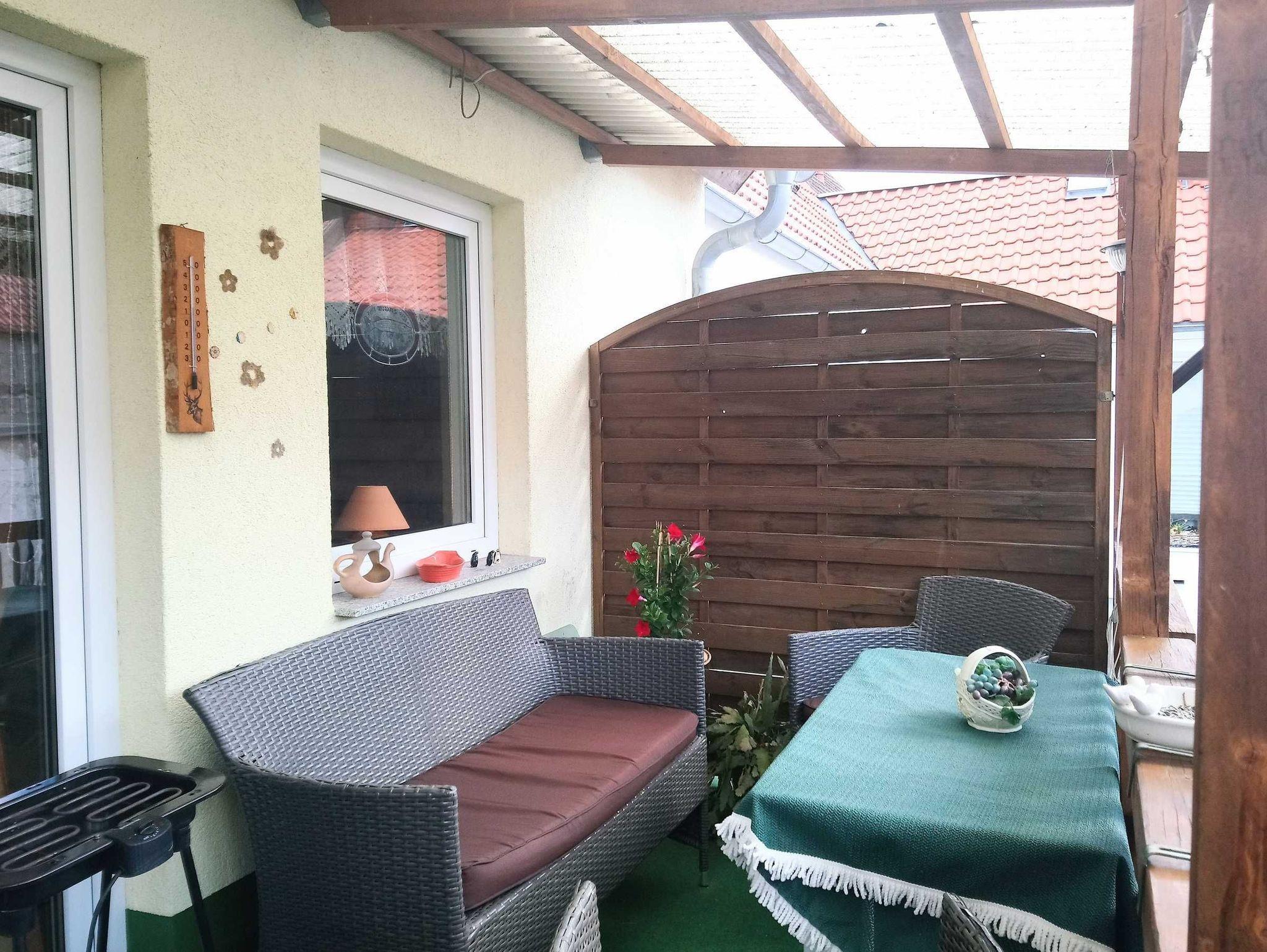 • überdachter Balkon nach Süden ausgerichtet, Rattanmöbel, Elektrogrill, kann als Raucherbereich genutzt werden