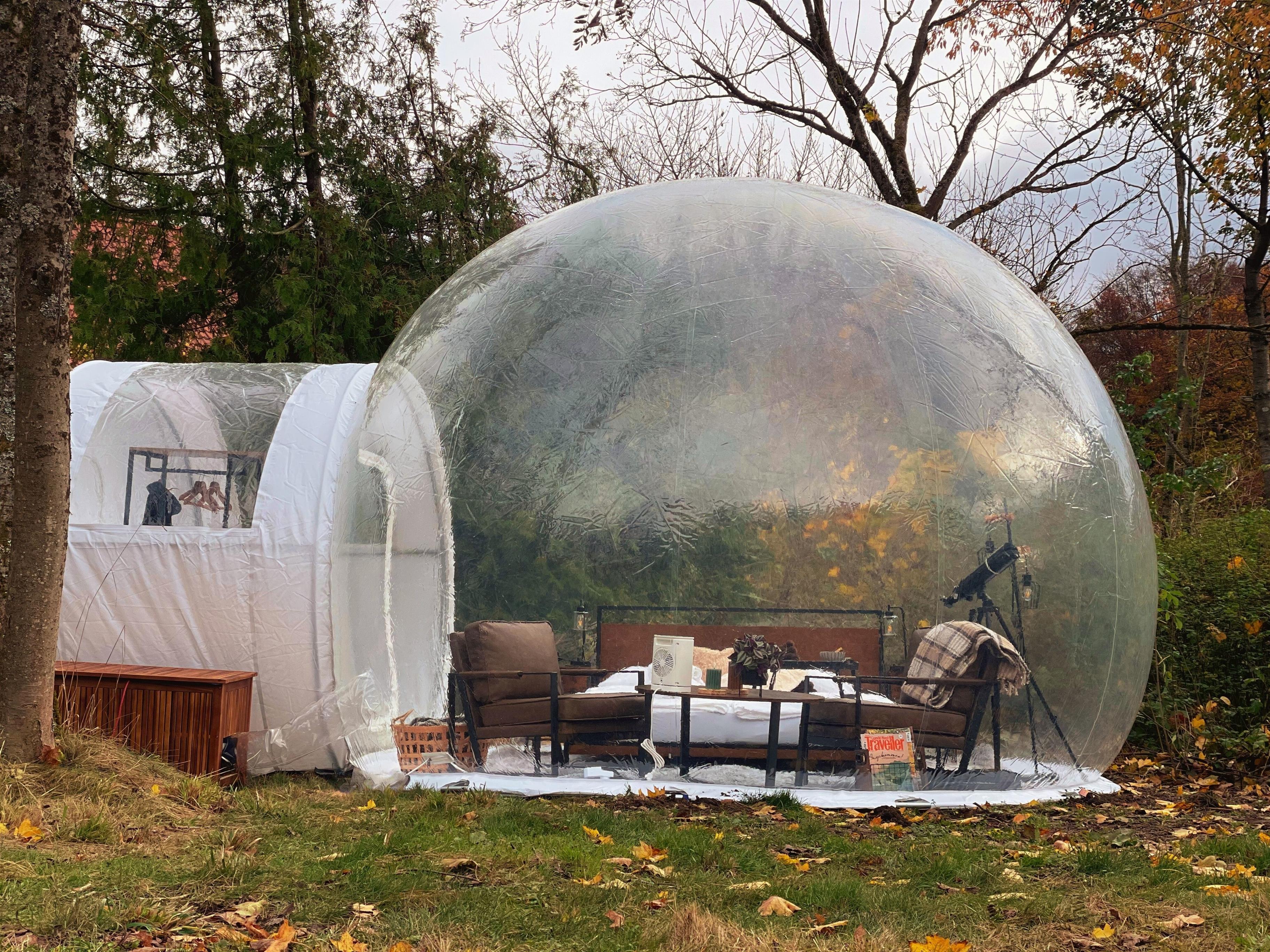 Das Bubble Tent befindet sich im hinteren Teil des hoteleigenen Gartens der Harzresidenz. Während Ihres Aufenthalts haben Sie die Möglichkeit, die sanitären Anlagen (Dusche, WC) der Hotelsauna zu nutzen. Das Frühstück können Sie ebenfalls täglich im Wintergarten-Restaurant des Hotels einnehmen.