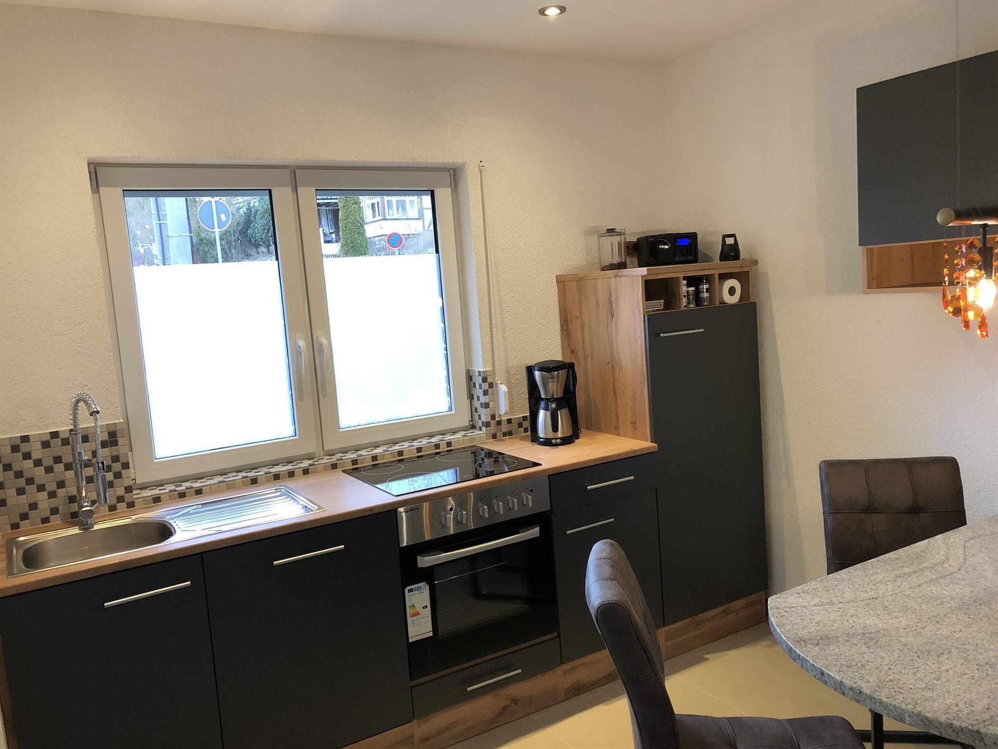Außerdem finden Sie im Erdgeschoß eine neue, komfortabel eingerichtete Küche mit Geschirrspüler, Backofen, Mikrowelle, Kühlschrank mit Eisfach und natürlich darf ein gemütlicher Essplatz nicht fehlen.