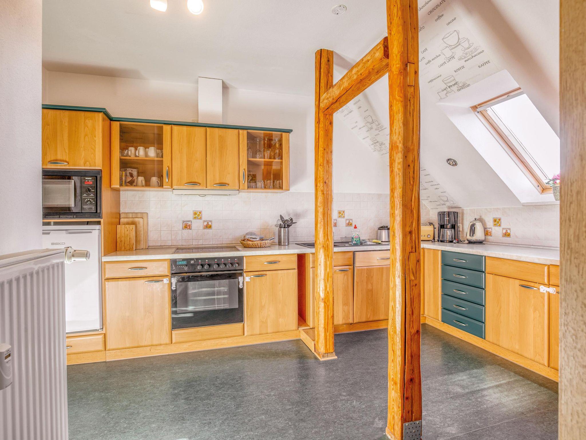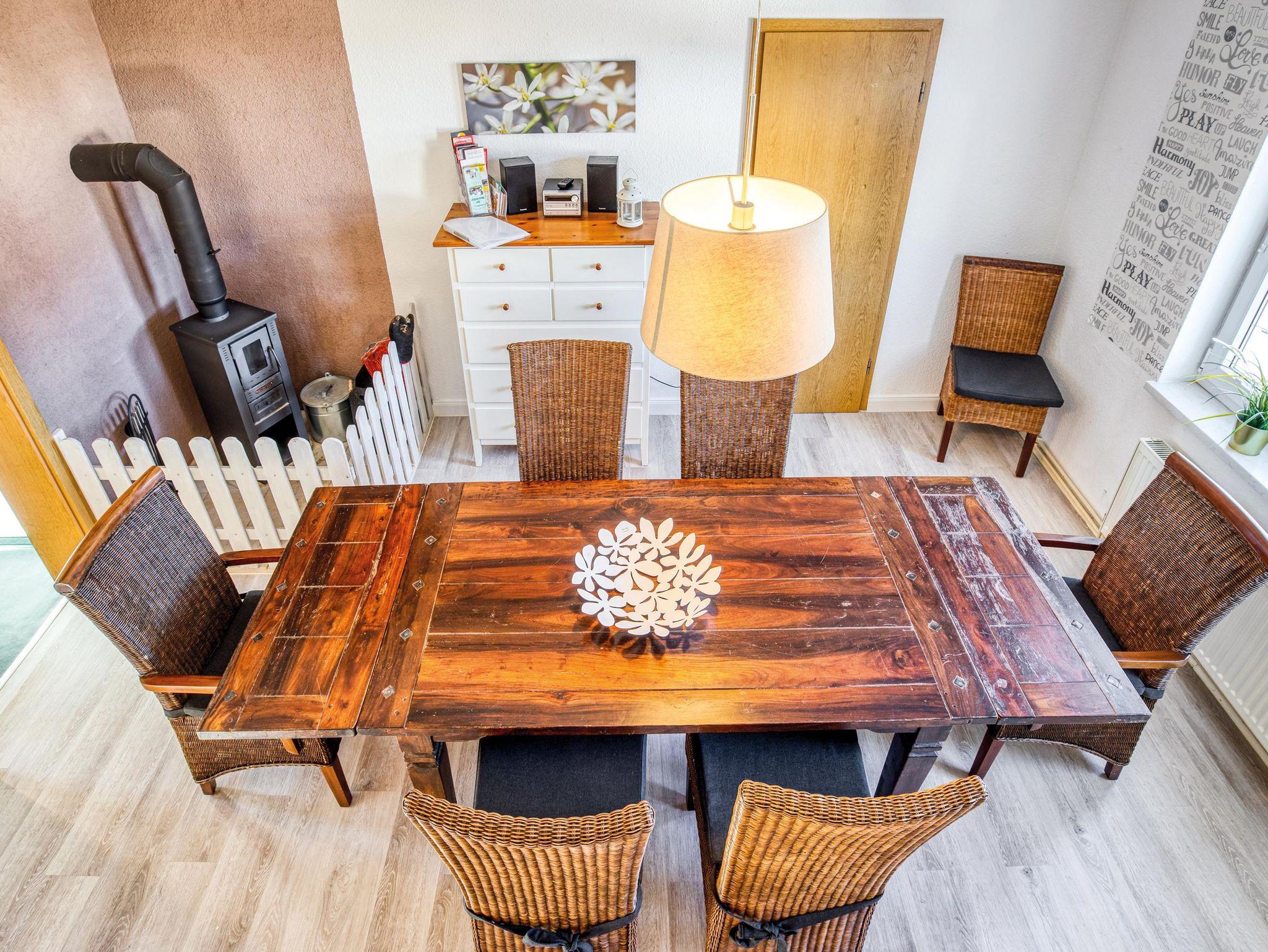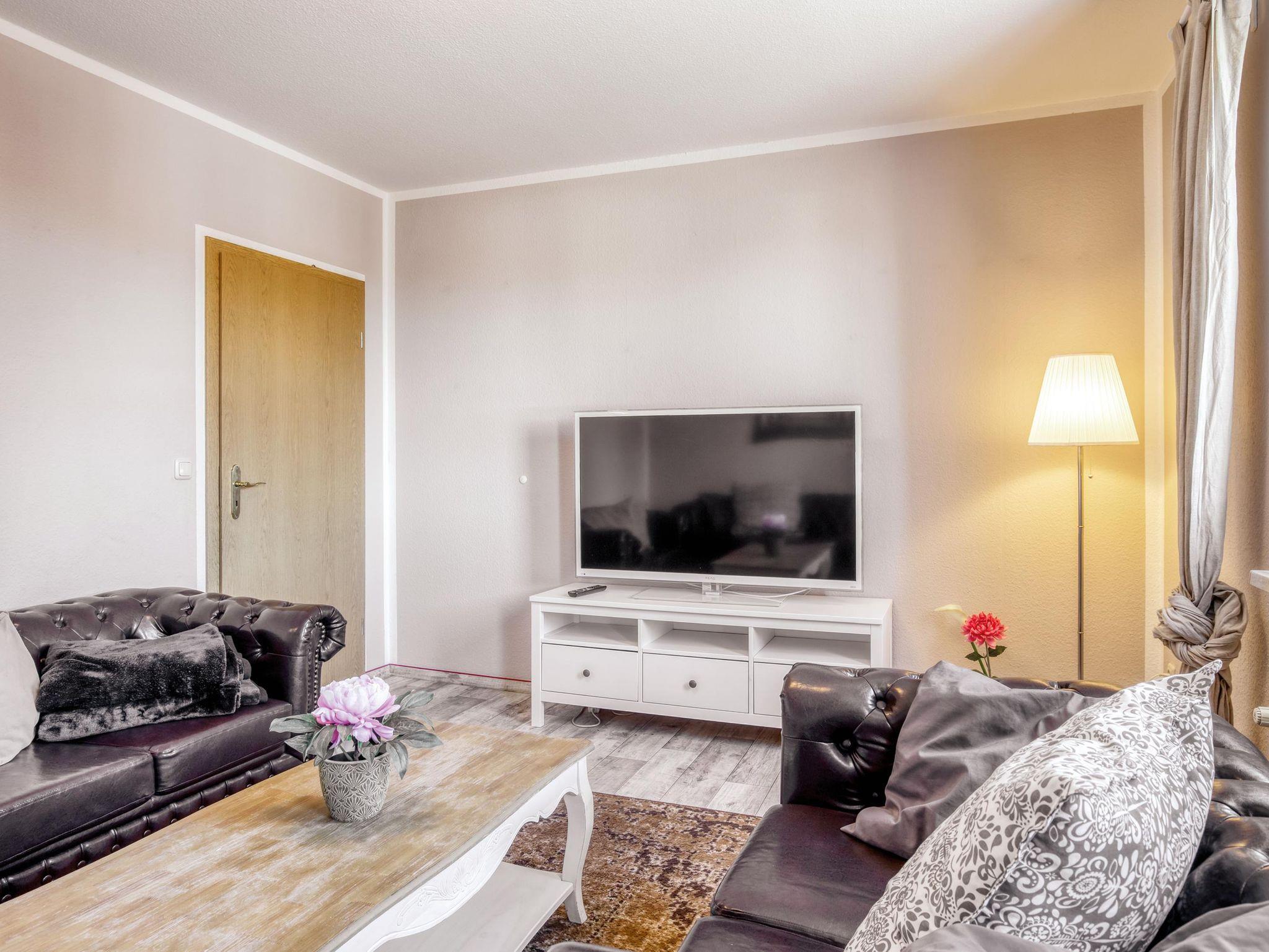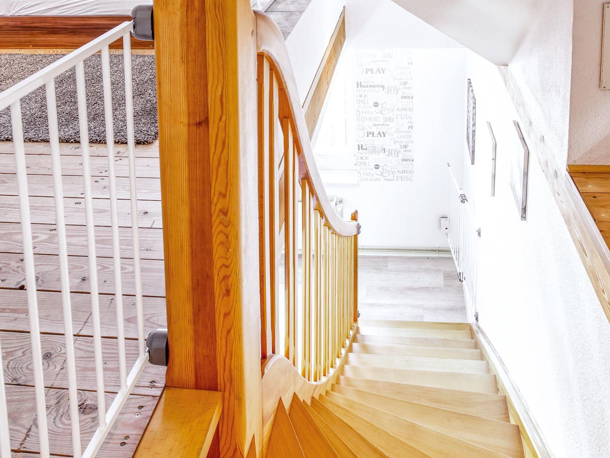 Sehr anspruchsvolle Ferienwohnung im Obergeschoss über 2 Etagen. Bietet Platz für bis zu 8 Personen und doch gibt es einen Wohlfühlfaktor! Separates Wohnzimmer mit drei Sofas und SAT-TV. 2 abschließbare Schlafzimmer und Snuzzelecke in der oberen Etage. 1 Schlafzimmer mit getrennten Betten in der unteren Etage. Große Küche mit Geschirrspüler, Backofen, Mikrowelle, E-Herd, Dunstabzugshaube, Kühlschrank. Küchengeräte: Kaffeemaschine, Wasserkocher, Toaster, Eierkocher. Anspruchsvolles Bad mit Dusche, ebenerdiger Einstieg. Waschmaschine und Trockner auf Anfrage im Keller nutzbar. Außensitzbereich. Parkmöglichkeiten auf der Straße. Bettwäsche/Handtücher in der Erstausstattung vorhanden. Endreinigung, Wasser- und Energiekosten inklusive.