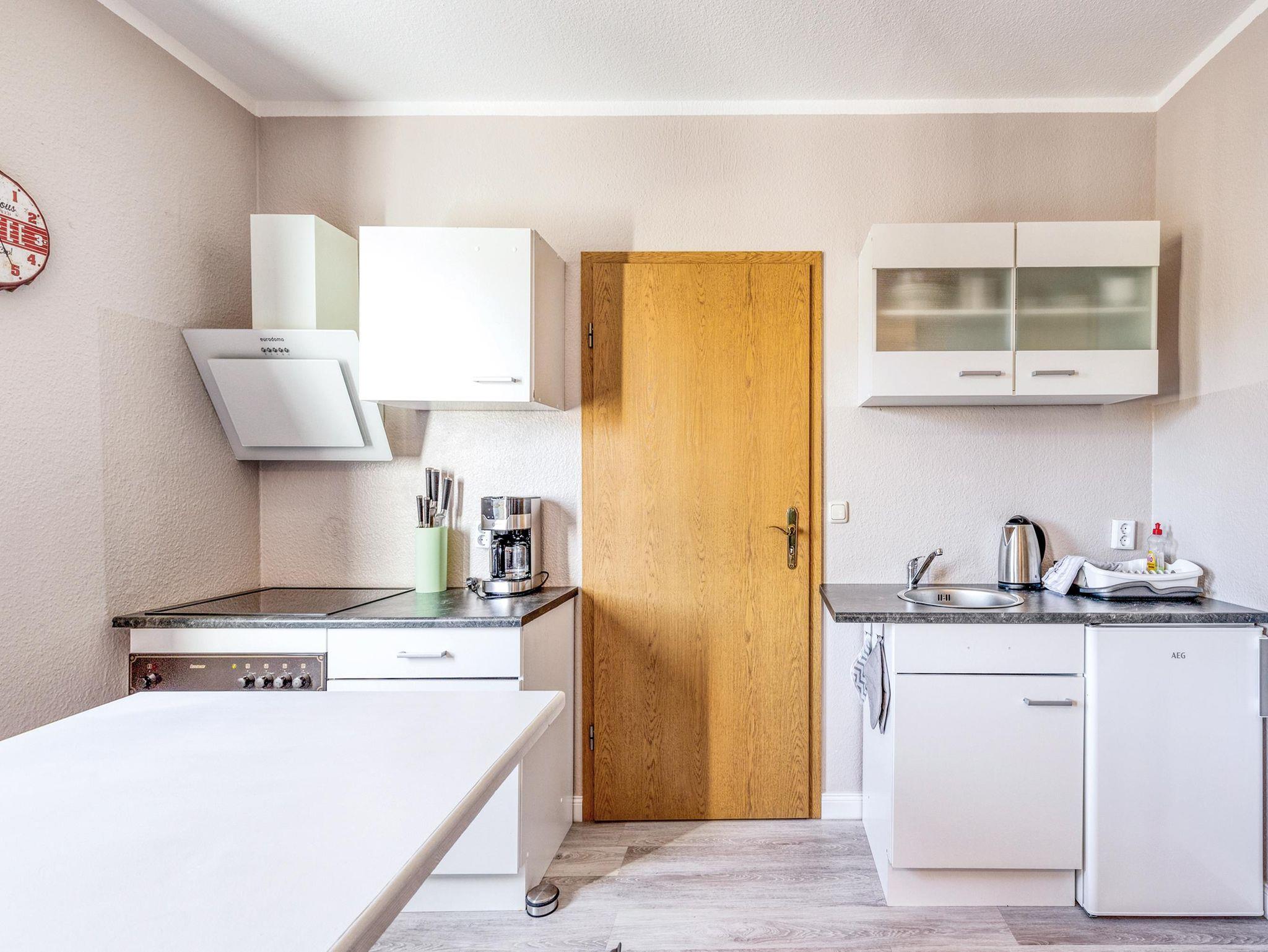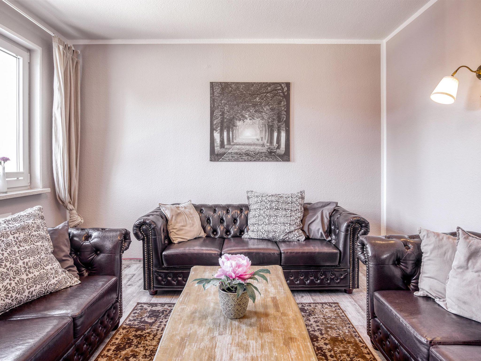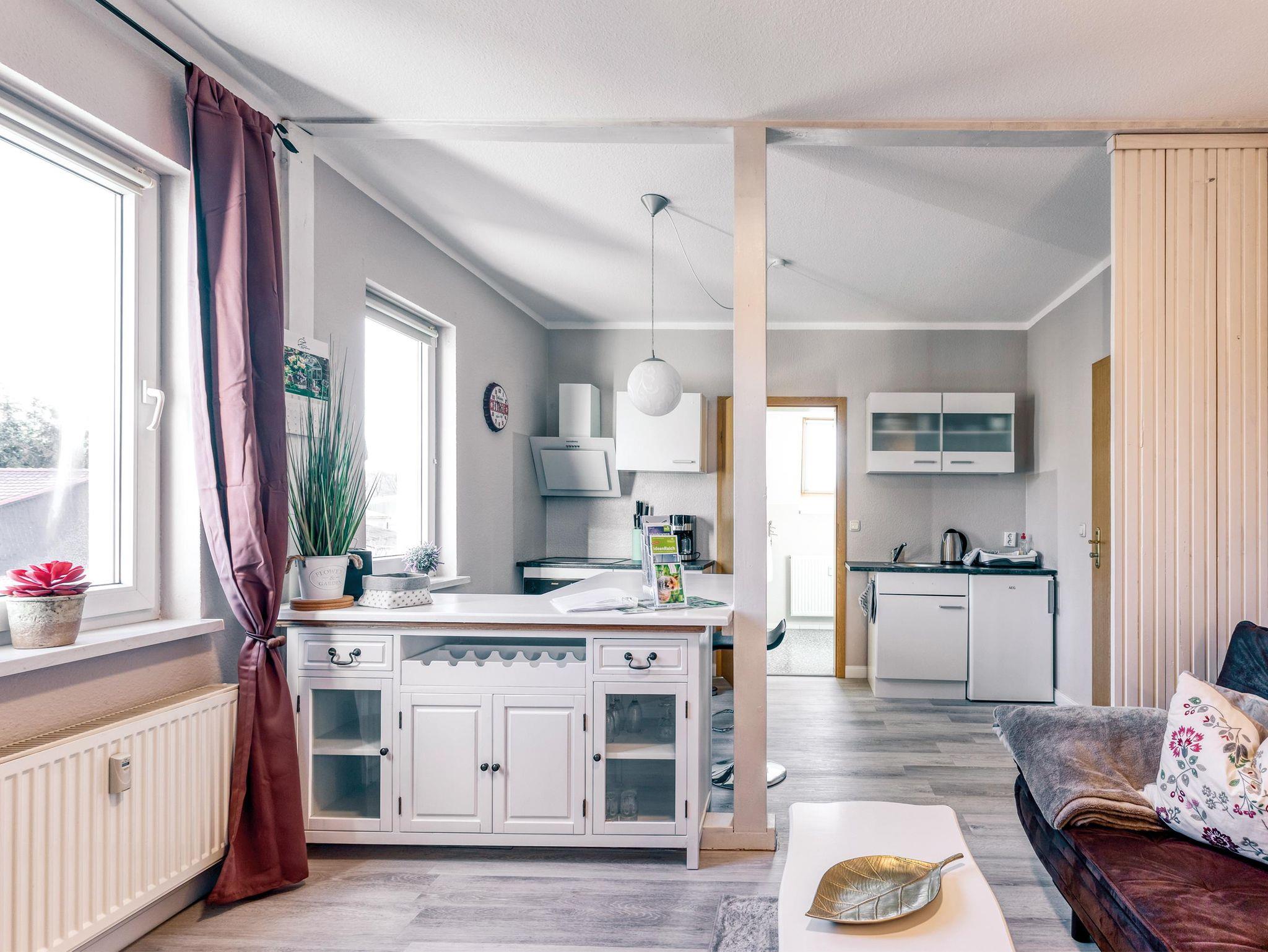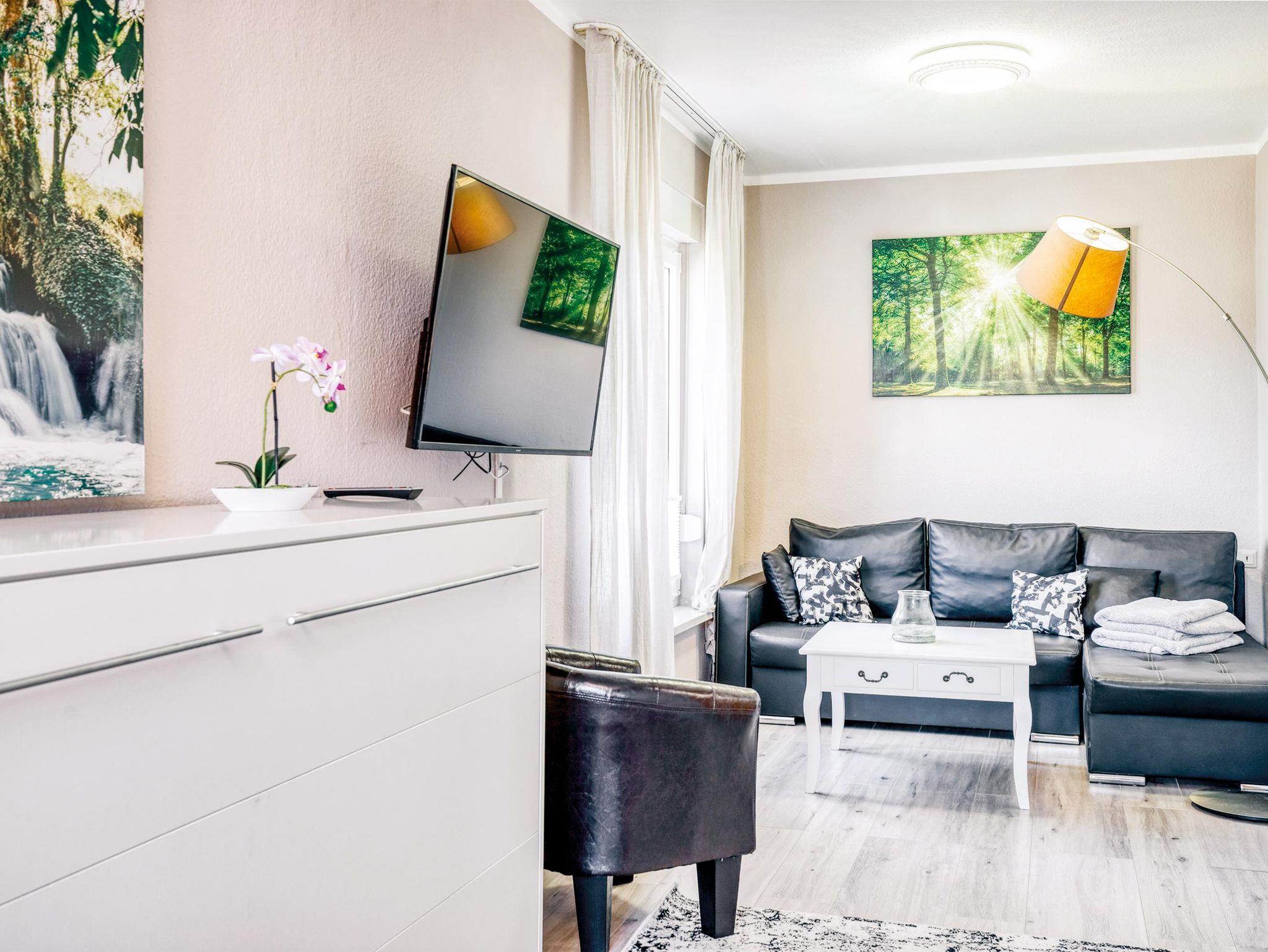 Sehr anspruchsvolle Ferienwohnung im Obergeschoss über 2 Etagen. Bietet Platz für bis zu 8 Personen und doch gibt es einen Wohlfühlfaktor! Separates Wohnzimmer mit drei Sofas und SAT-TV. 2 abschließbare Schlafzimmer und Snuzzelecke in der oberen Etage. 1 Schlafzimmer mit getrennten Betten in der unteren Etage. Große Küche mit Geschirrspüler, Backofen, Mikrowelle, E-Herd, Dunstabzugshaube, Kühlschrank. Küchengeräte: Kaffeemaschine, Wasserkocher, Toaster, Eierkocher. Anspruchsvolles Bad mit Dusche, ebenerdiger Einstieg. Waschmaschine und Trockner auf Anfrage im Keller nutzbar. Außensitzbereich. Parkmöglichkeiten auf der Straße. Bettwäsche/Handtücher in der Erstausstattung vorhanden. Endreinigung, Wasser- und Energiekosten inklusive.