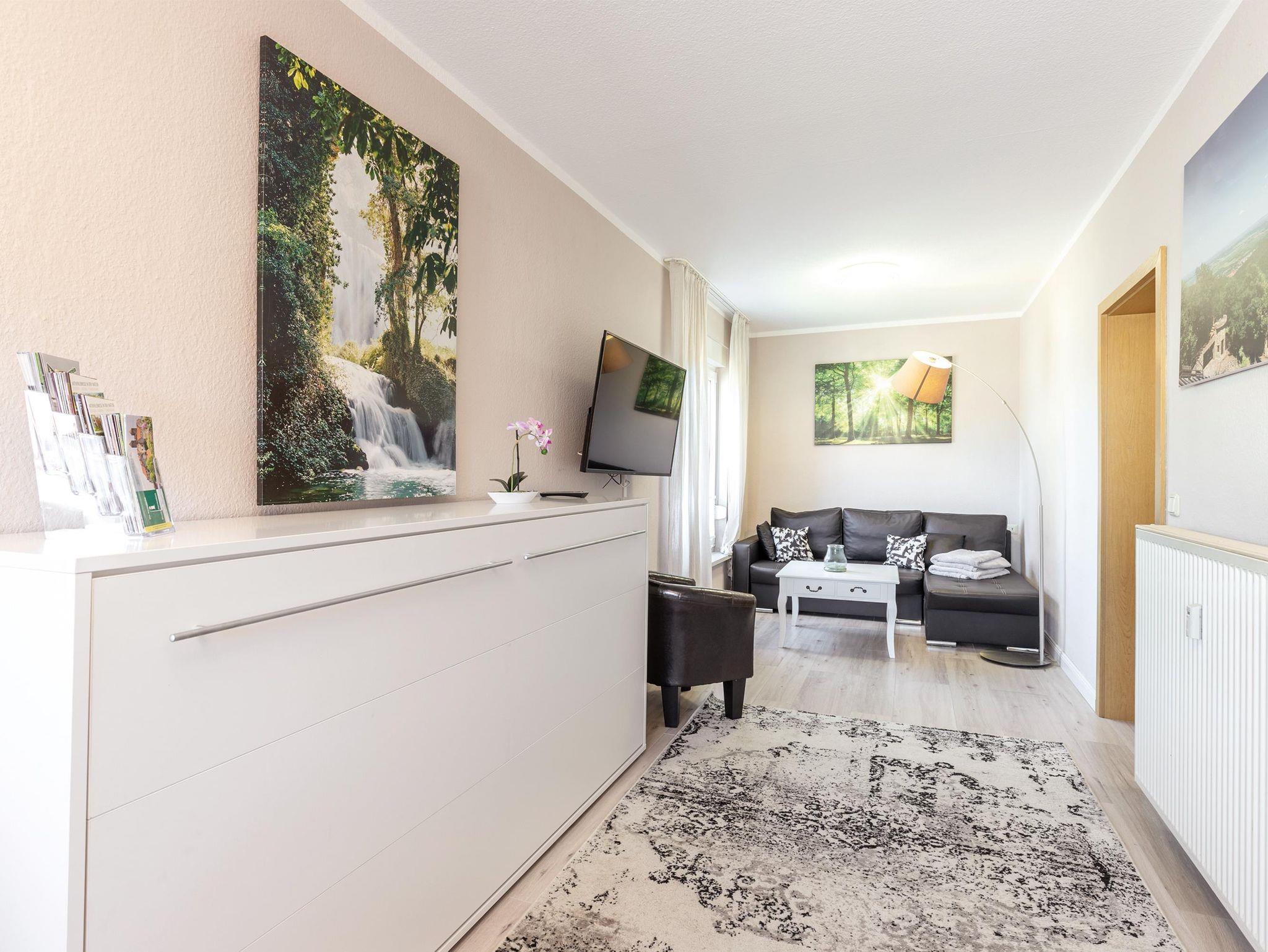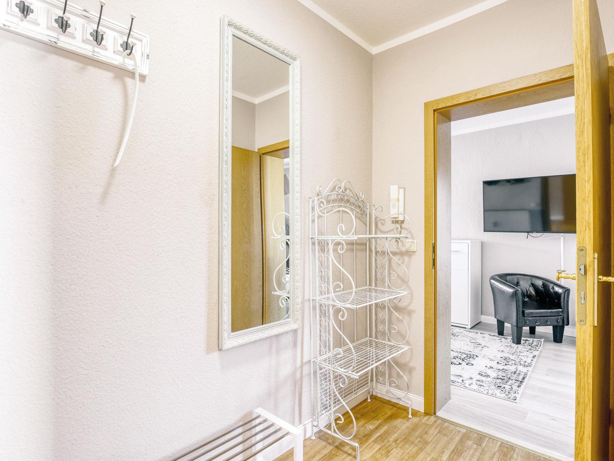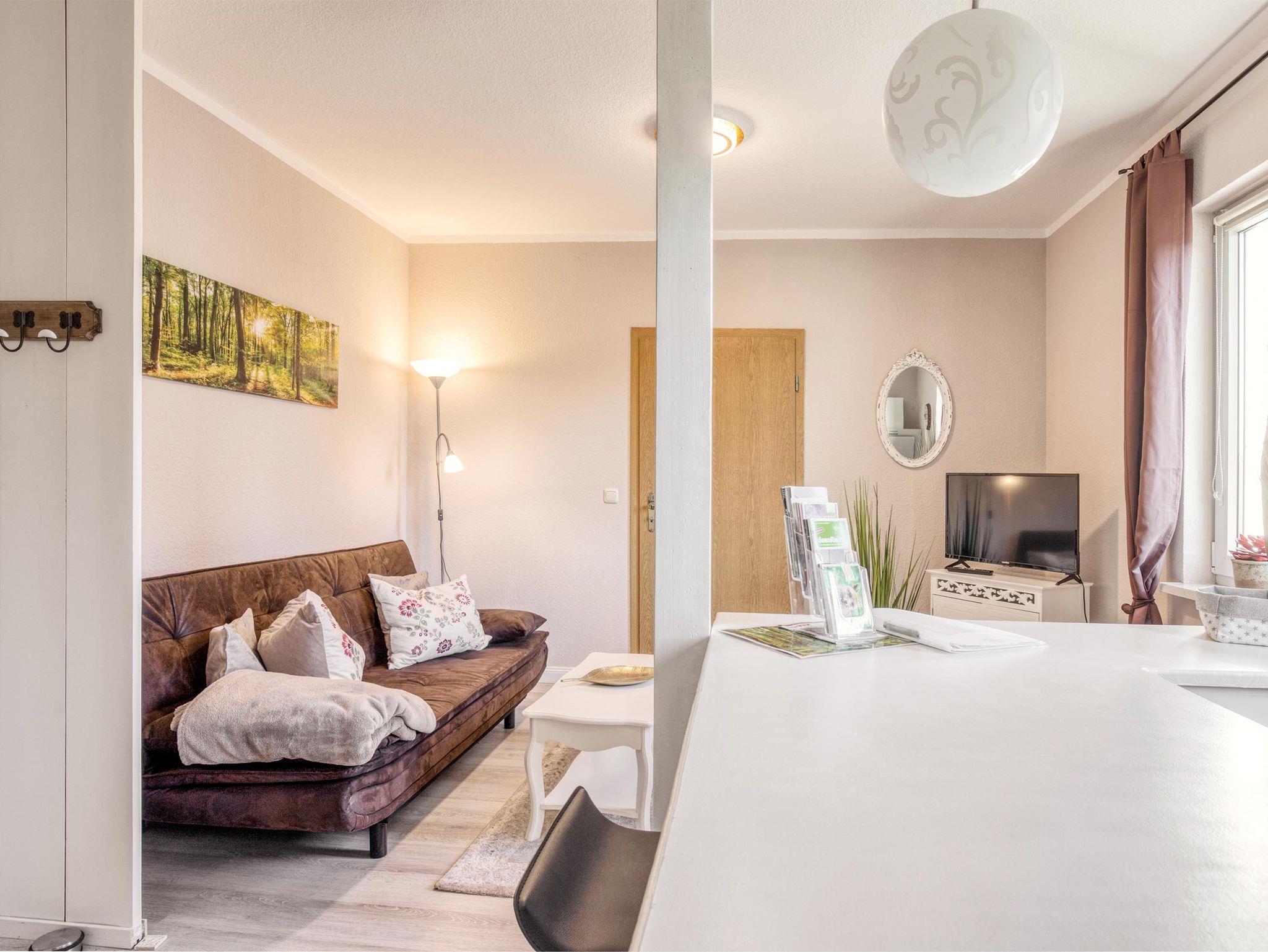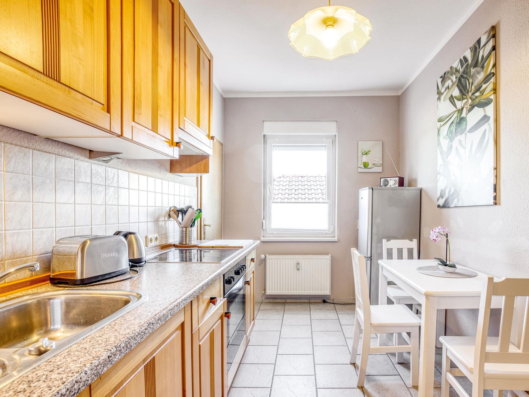 Sehr anspruchsvolle Ferienwohnung im Obergeschoss über 2 Etagen. Bietet Platz für bis zu 8 Personen und doch gibt es einen Wohlfühlfaktor! Separates Wohnzimmer mit drei Sofas und SAT-TV. 2 abschließbare Schlafzimmer und Snuzzelecke in der oberen Etage. 1 Schlafzimmer mit getrennten Betten in der unteren Etage. Große Küche mit Geschirrspüler, Backofen, Mikrowelle, E-Herd, Dunstabzugshaube, Kühlschrank. Küchengeräte: Kaffeemaschine, Wasserkocher, Toaster, Eierkocher. Anspruchsvolles Bad mit Dusche, ebenerdiger Einstieg. Waschmaschine und Trockner auf Anfrage im Keller nutzbar. Außensitzbereich. Parkmöglichkeiten auf der Straße. Bettwäsche/Handtücher in der Erstausstattung vorhanden. Endreinigung, Wasser- und Energiekosten inklusive.